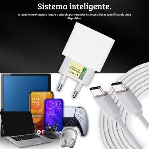O nosso carregador 40W apresenta um design elegante e compacto, facilitando o transporte e o armazenamento. Seu acabamento em material resistente não só proporciona durabilidade, mas também um toque de sofisticação. Leve-o na bolsa, mochila ou até mesmo no bolso, e tenha sempre à mão a energia que você precisa. O Carregador 40W com duas entradas é a combinação perfeita de potência e segurança.