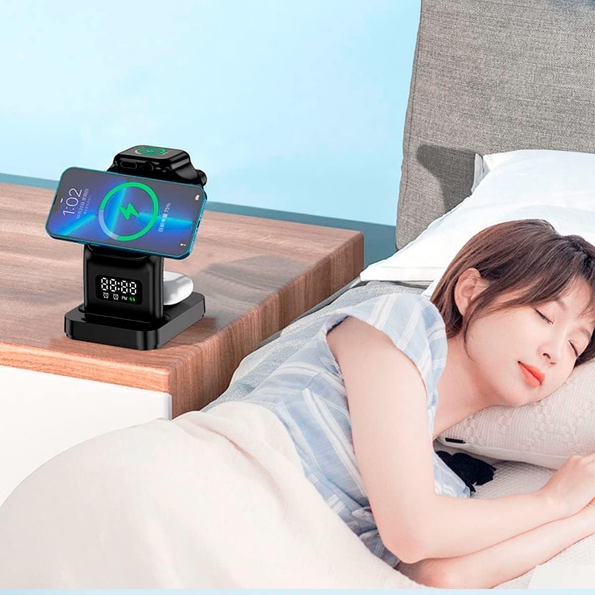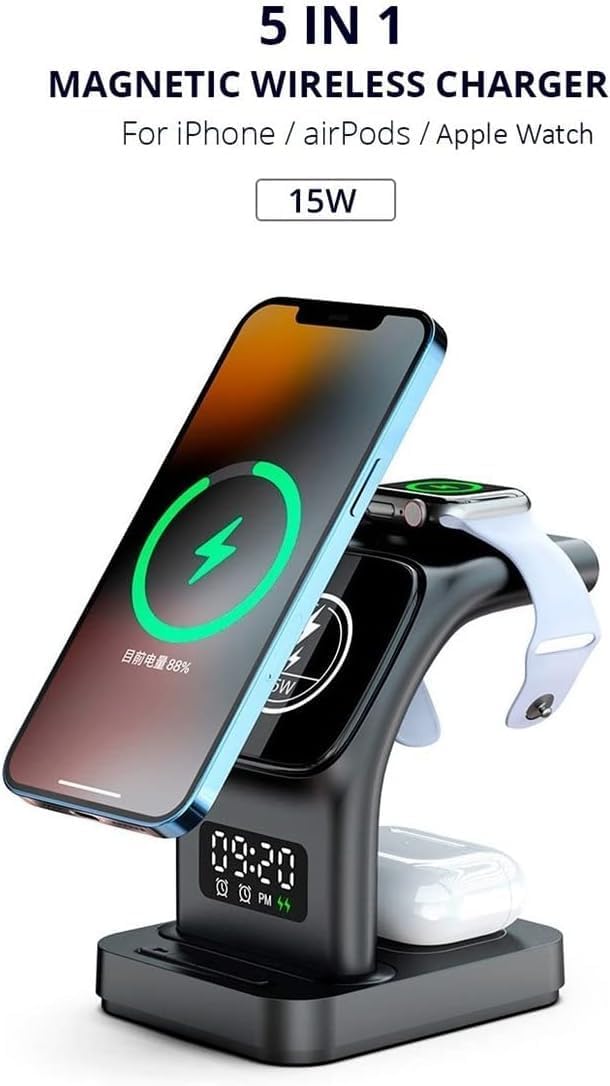 ⚡ Carregamento Rápido 5 em 1: Mantenha seu iPhone, iWatch, Pods e dispositivos Android carregados simultaneamente, economizando tempo e espaço.