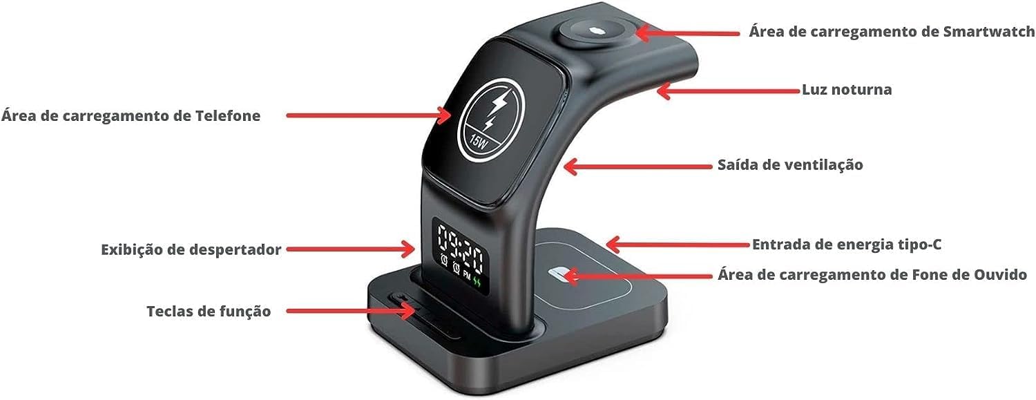 🔋 A Revolução no Carregamento 5 em 1: Dock Station Universal para Seu Mundo Conectado! 🔋 Desfrute da máxima conveniência com nossa Dock Station 5 em 1, projetada para ser totalmente compatível com dispositivos Apple e Android. Mantenha seu iPhone 15, 14, 13, 12, 11 (Pro, Pro Max), XS, XR, X, 8 (Plus), iWatch 7, 6, SE, 5, 4, 3, 2, Pods 3, 2, Pro, e dispositivos Android sempre carregados e prontos para a ação. Principais Destaques: 🔄 Compatibilidade Total: Carregue simultaneamente seu iPhone, iWatch e Pods, além de dispositivos Android, proporcionando total flexibilidade. 🔋 Carregamento Rápido e Eficiente: Tecnologia avançada para um carregamento rápido e seguro, mantendo seus dispositivos alimentados o dia todo. 🌟 Design Elegante e Funcional: A Dock Station complementa seu ambiente com estilo e oferece uma solução organizada para seus dispositivos. 📱 Suporte para Modo de Exibição Noturna: Seu iWatch ganha vida à noite enquanto carrega, servindo como um elegante relógio de mesa. 🌐 Compatibilidade Universal com Android: Além dos dispositivos Apple, a Dock Station suporta uma ampla gama de dispositivos Android, garantindo flexibilidade total. 🚀 Construção Durável e Compacta: Feita com materiais de alta qualidade, a dock é portátil, perfeita para casa, escritório ou viagens. 🌈 Compatibilidade com Pods Pro: Projetada para se ajustar perfeitamente aos Pods Pro, oferecendo um carregamento seguro e eficiente. Adquira Agora e Simplifique Seu Espaço de Carregamento com Elegância e Eficiência! 🔌✨ Não deixe seus dispositivos sem energia. Invista na Dock Station 5 em 1 e experimente a verdadeira liberdade de carregamento. 🍏🔗
