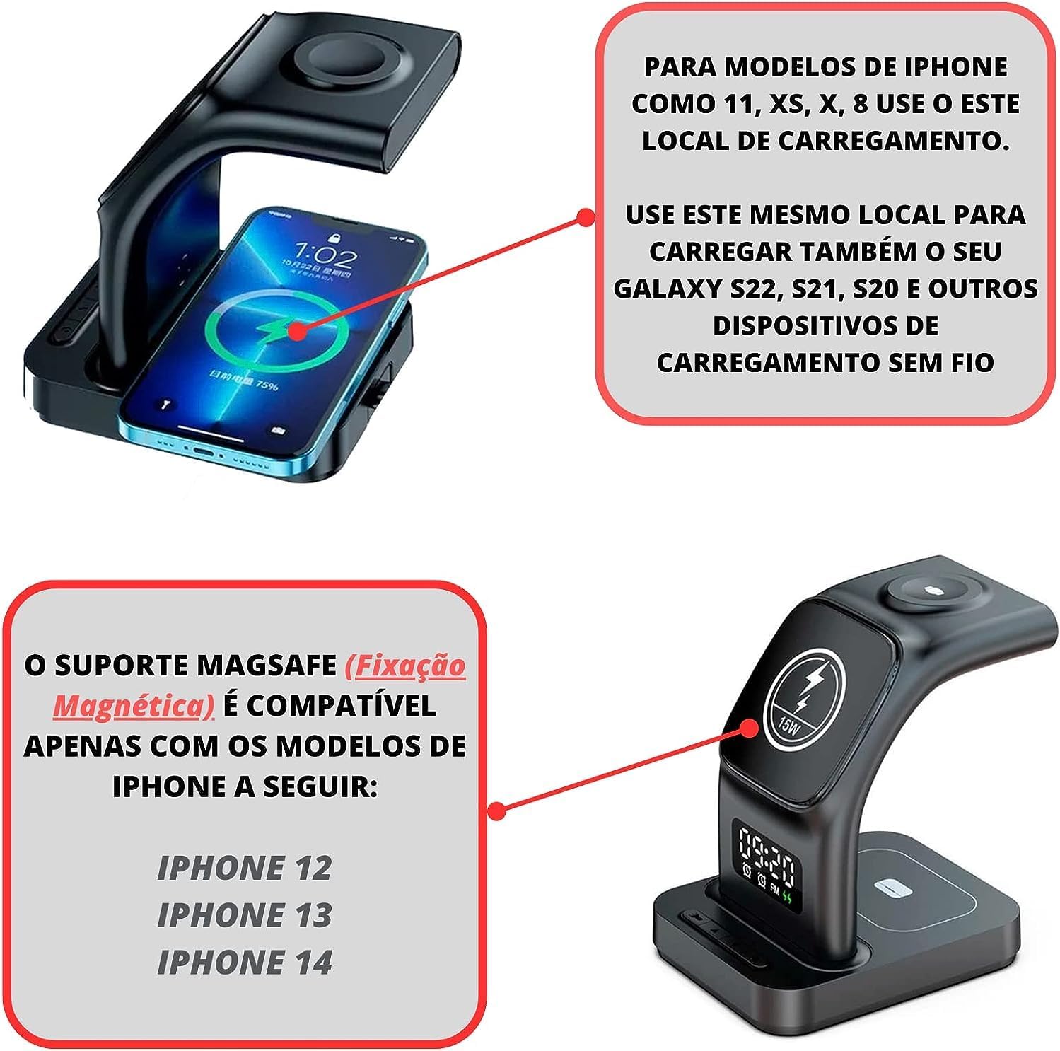 Carregador sem Fio 3 em 1! Compatível com Apple iPhone/iWatch/Pods, iPhone 15 14,13,12,11 (Pro, Pro Max)/XS/XR/XS/X/8 (Plus), iWatch 7/6/SE/5/4/3/2, Pods 3/2/pro5 (Preto)