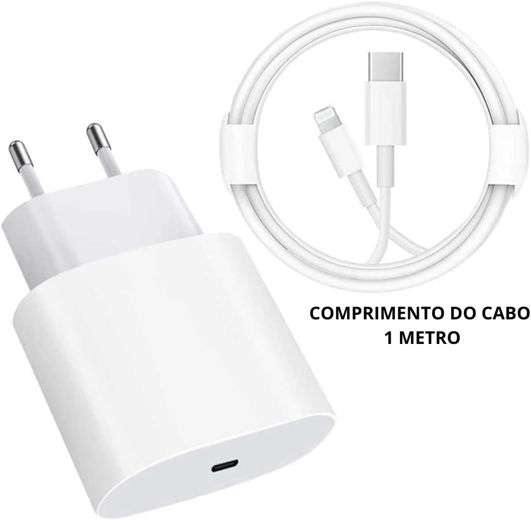Carregador Turbo 30W Compatível C/iPhone 8 Plus X Xr 11 12 13 14 Pro Max Usb-c Com Cabo Tipo-C LIGTHNING Com Tecnologia PD