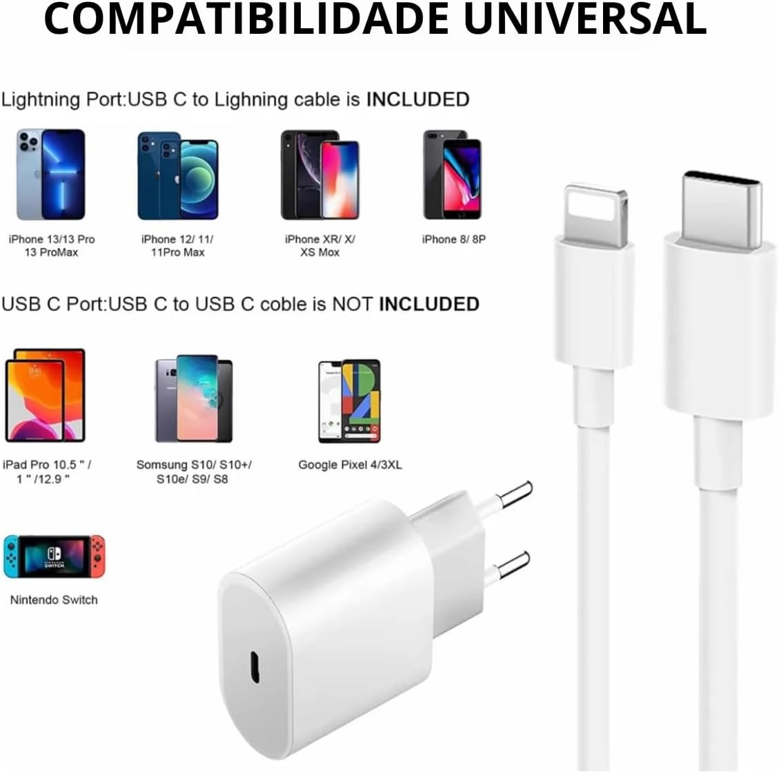 Compatível com Carregamento Rápido 🚀: Mantém seu dispositivo sempre pronto para uso.