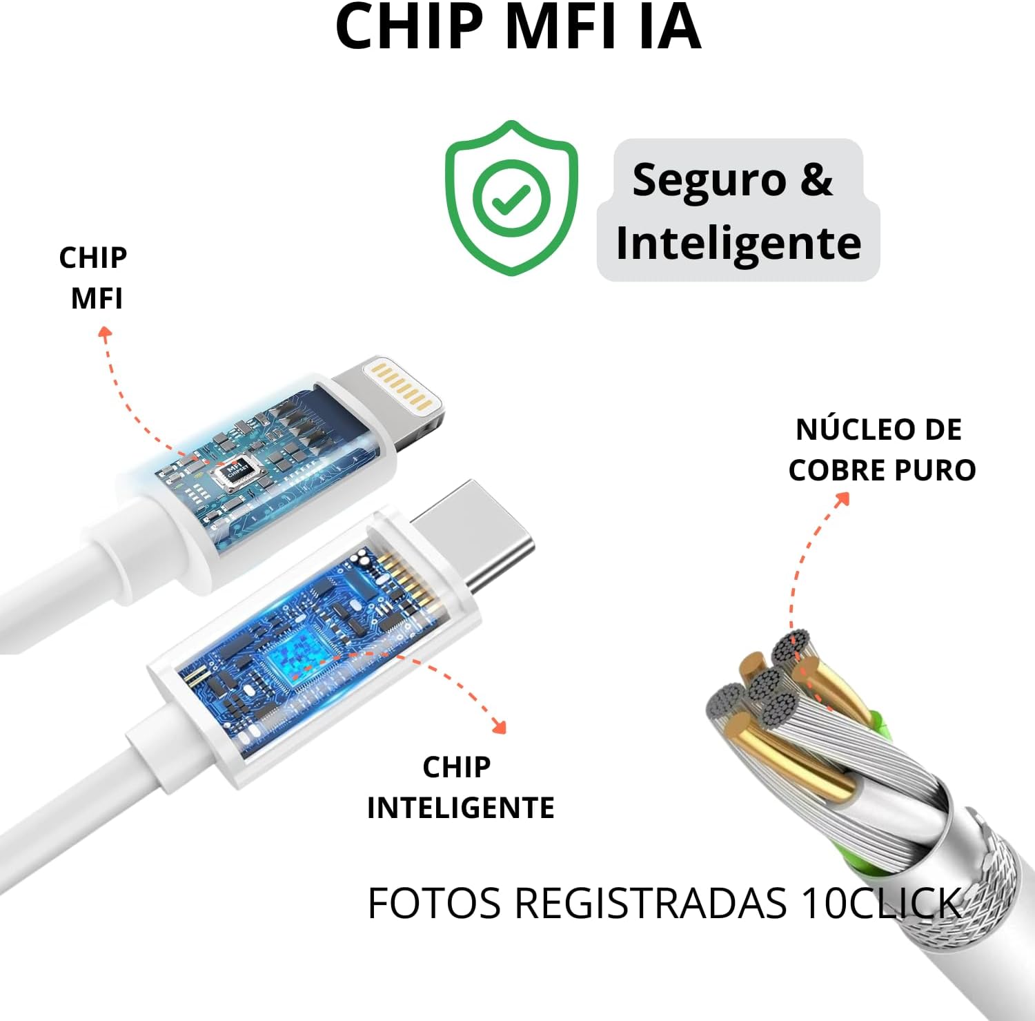 ✅ CHIP MFI: Compatibilidade total com dispositivos Apple. Garante reconhecimento imediato pelo iPhone, evita mensagens de erro e protege contra superaquecimento e danos à bateria.