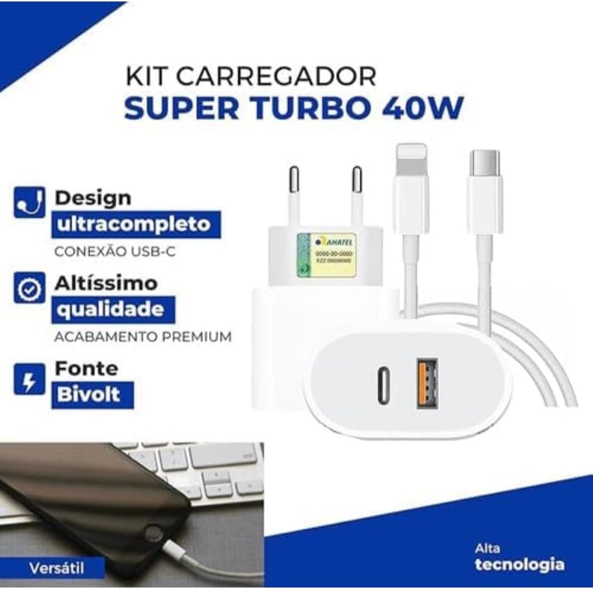 ✅ POTÊNCIA TURBO: Carregador super turbo de 40W com tecnologia avançada para carregamento rápido e eficiente dos seus dispositivos