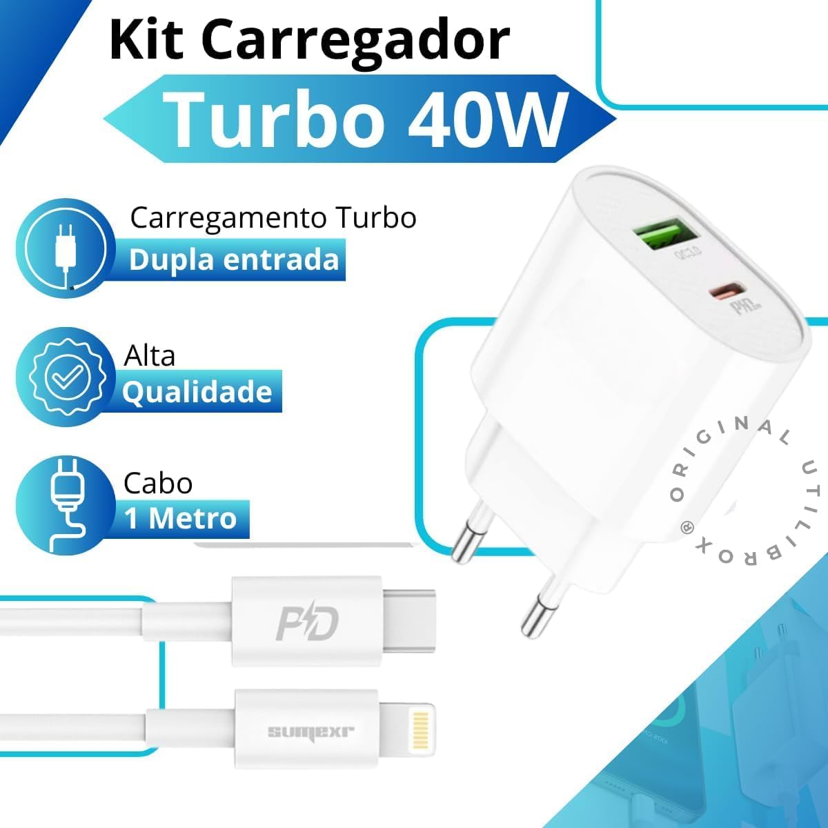 Transforme a forma como você carrega seus dispositivos e experimente a diferença com o Carregador Turbo 40W!