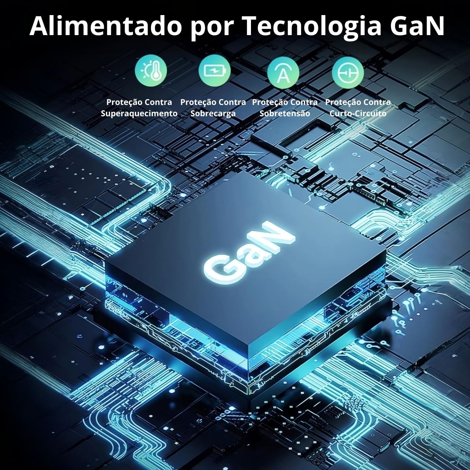 Equipado com a revolucionária tecnologia GaN, este carregador não só é mais compacto, mas também oferece um desempenho superior. A tecnologia GaN permite que o carregador opere em temperaturas mais baixas, reduzindo o calor gerado durante o uso e aumentando a eficiência energética. Isso significa que você obtém mais potência em um tamanho menor, tornando-o o carregador ideal para quem está sempre em movimento, sem comprometer a segurança ou a durabilidade.