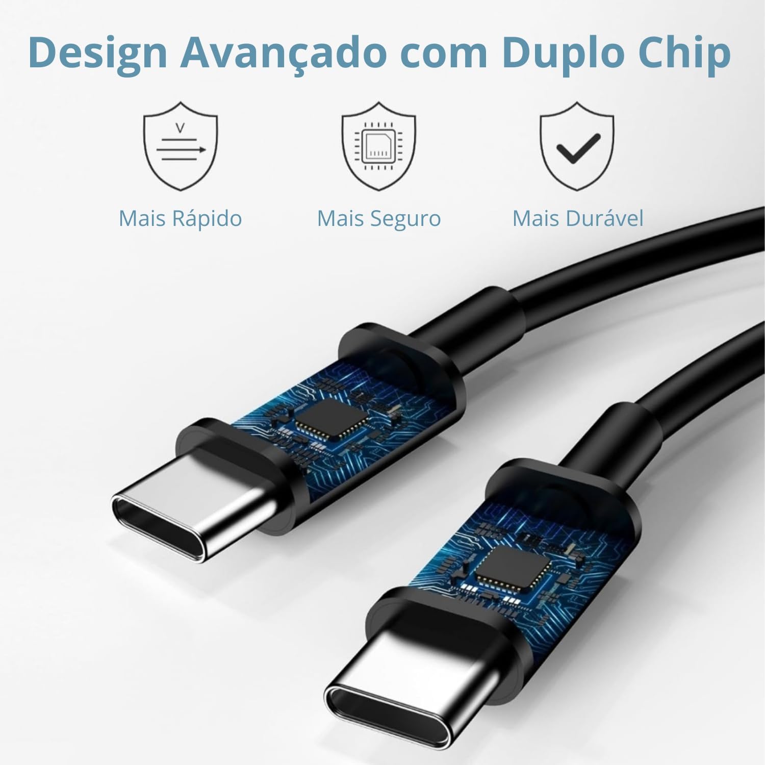 - 1x Cabo Tipo-C para Tipo-C (1 metro), ideal para conectar dispositivos facilmente e garantir uma experiência de carregamento sem interrupções