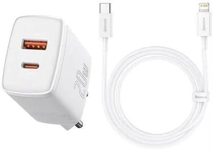 Carregador Turbo Compatível com iPhone 6/7/8/x/11/12/13/14 20w Usb-c Baseus com cabo usb-c X Lightning – Branco