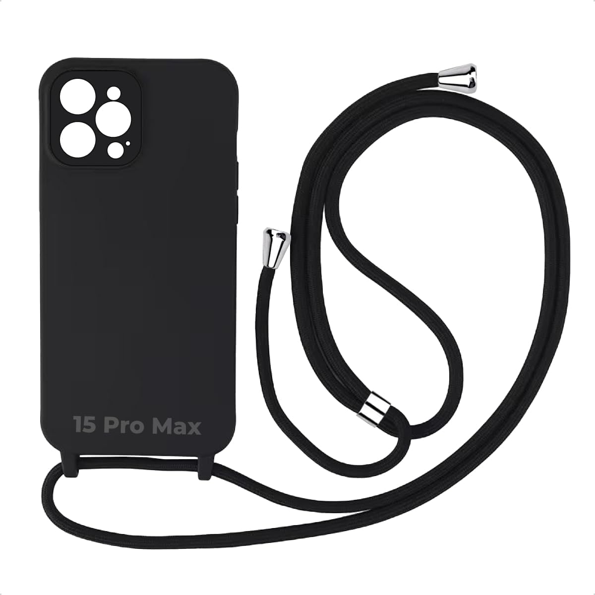 Case Capa Capinha Facility Com Cordão Alça Para iPhone 15 Pro Max (Preto)