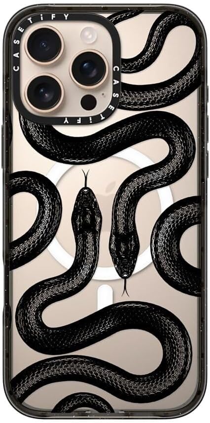 CASETiFY Capa Impact para iPhone 16 Pro Max [fina/2,5 m. Proteção contra quedas de grau militar 4X/compatível com Magsafe] – Kingsnake preta – preto transparente