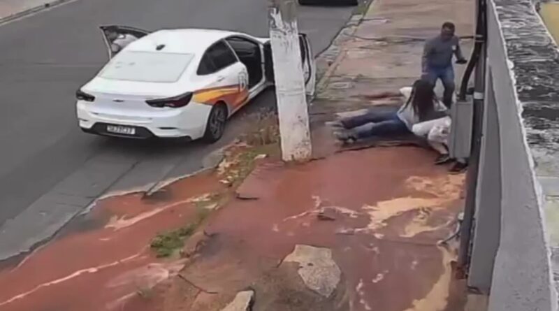 Nas imagens, registradas por uma câmera de segurança, é possível ver o repórter conversando com o entrevistado, quando a calçada, coberta por água suja, se rompe. Em seguida, eles caem e são socorridos pela equipe de gravação e por um pedestre que passava pelo local (assista acima).
