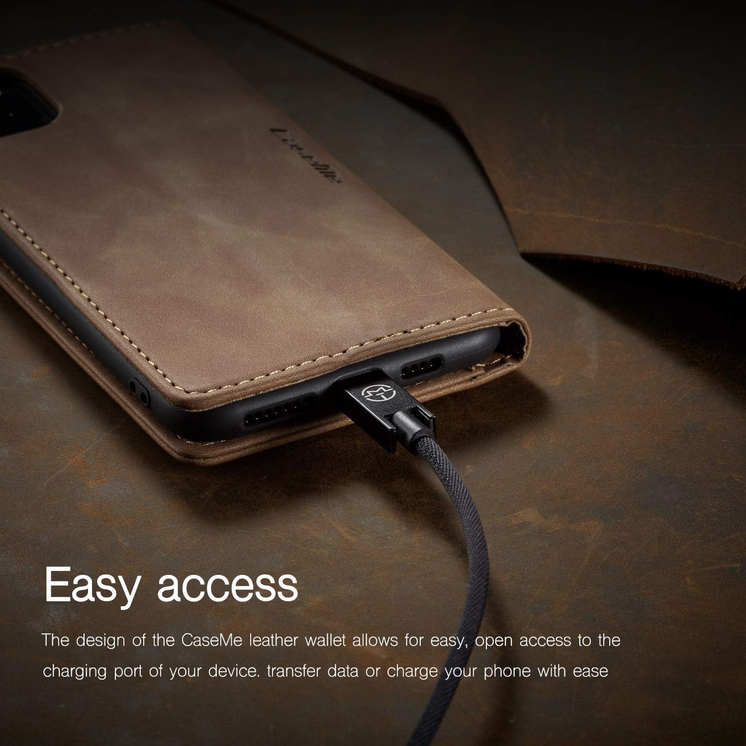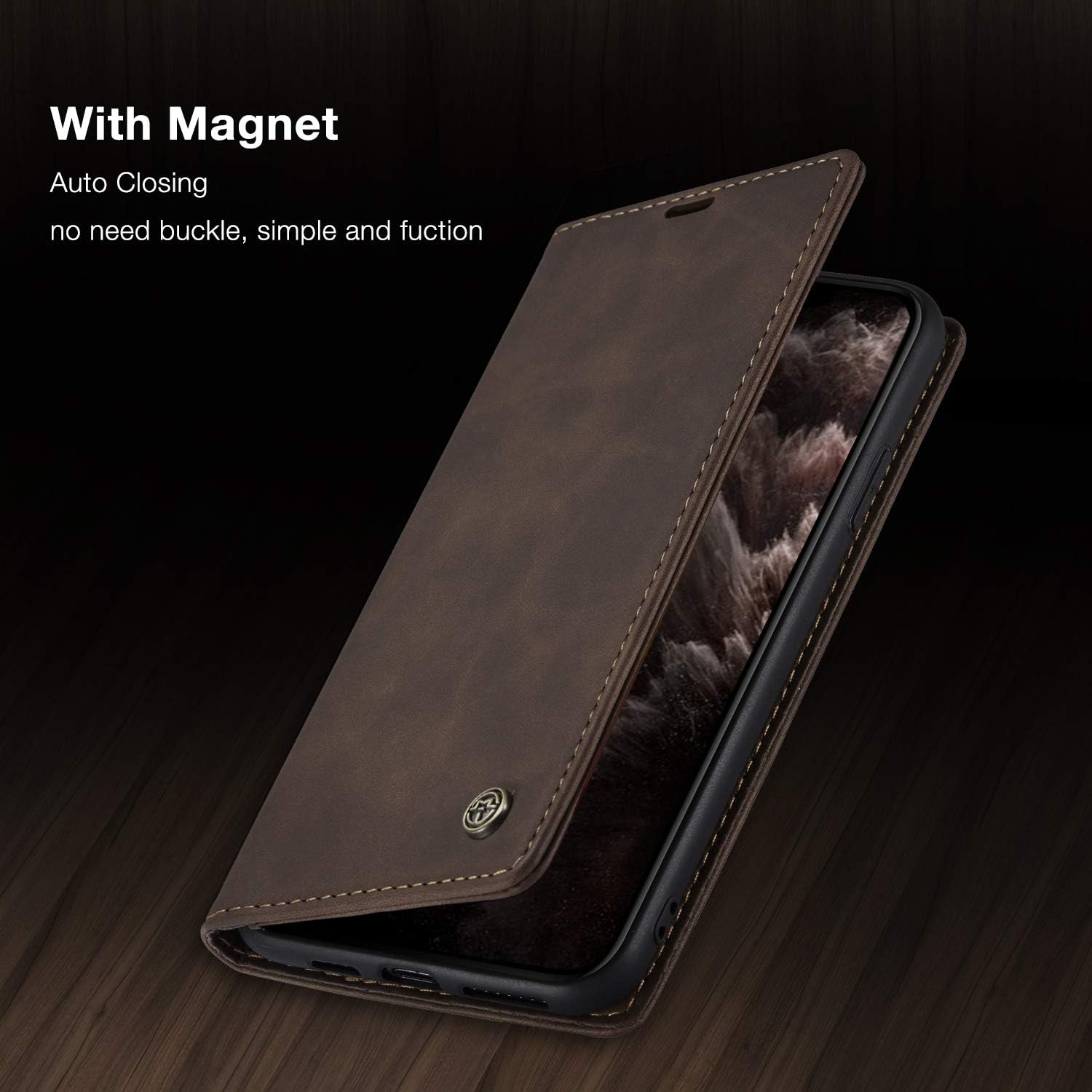 Cracedily Capa para iPhone 11 Pro Max, capa de couro tipo carteira flip com suporte para cartão, fecho magnético, à prova de choque, capa protetora para iPhone 11 Pro Max, café