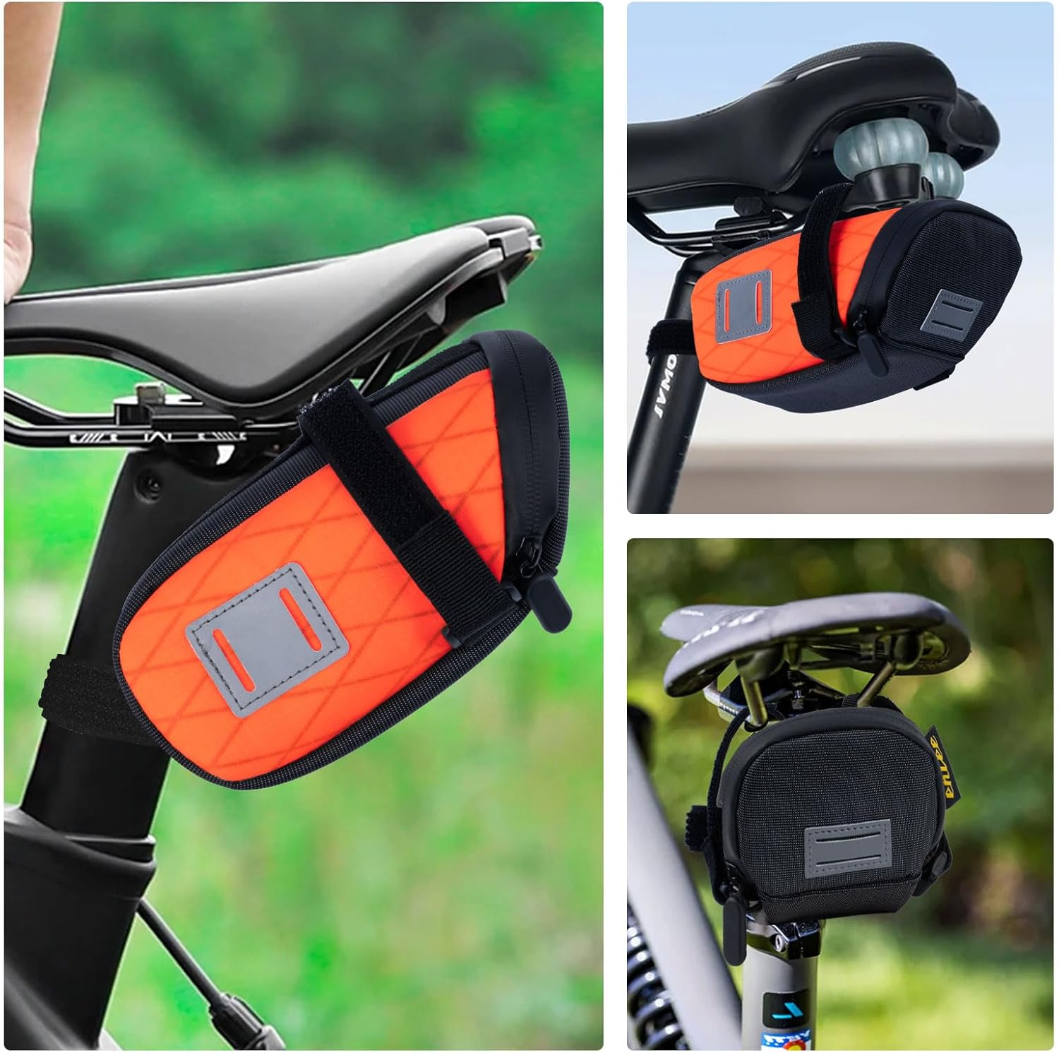 ENLEE Bike Seat Bag Waterproof Bicycle Saddle Bag Reflective Bike Accessories Storage Pouch Under Seat for Road Mountain Foldable Bikes Large Orange