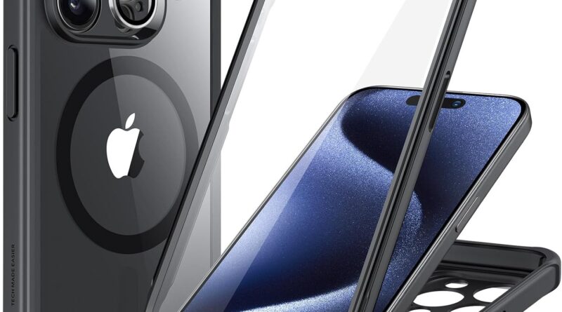ESR Capa para iPhone 15 Pro Max, compatível com MagSafe, capa à prova de quedas de grau militar para iPhone 15 Pro Max com protetor de tela de vidro temperado 9H+ integrado, preto transparente