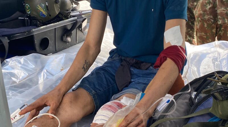 Inicialmente, ele foi levado para um acampamento, onde recebeu os primeiros atendimentos e neste domingo (22) foi transportado por um helicóptero do Exército Brasileiro. A aeronave pousou por volta das 11h30 deste domingo, na Base Aérea de Boa Vista.