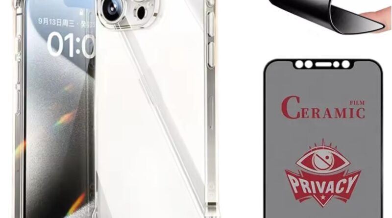 GL CASES Kit Capa Case Compatível Capinha Para Apple iPhone 14 Pro Max Anti Impacto Reforçada Silicone Transparente Flexível + Pelicula De Cerâmica Privacidade Fosca Anti Espião (iPhone 14 Pro Max)