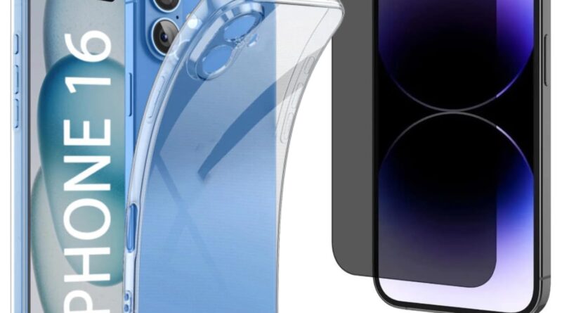GL CASES Kit Capa Case Compatível Capinha Para Apple iPhone 16 Anti Impacto Reforçada Silicone Transparente Flexível + Pelicula Privacidade Anti Espião Spy Vidro Temperado (iPhone 16)