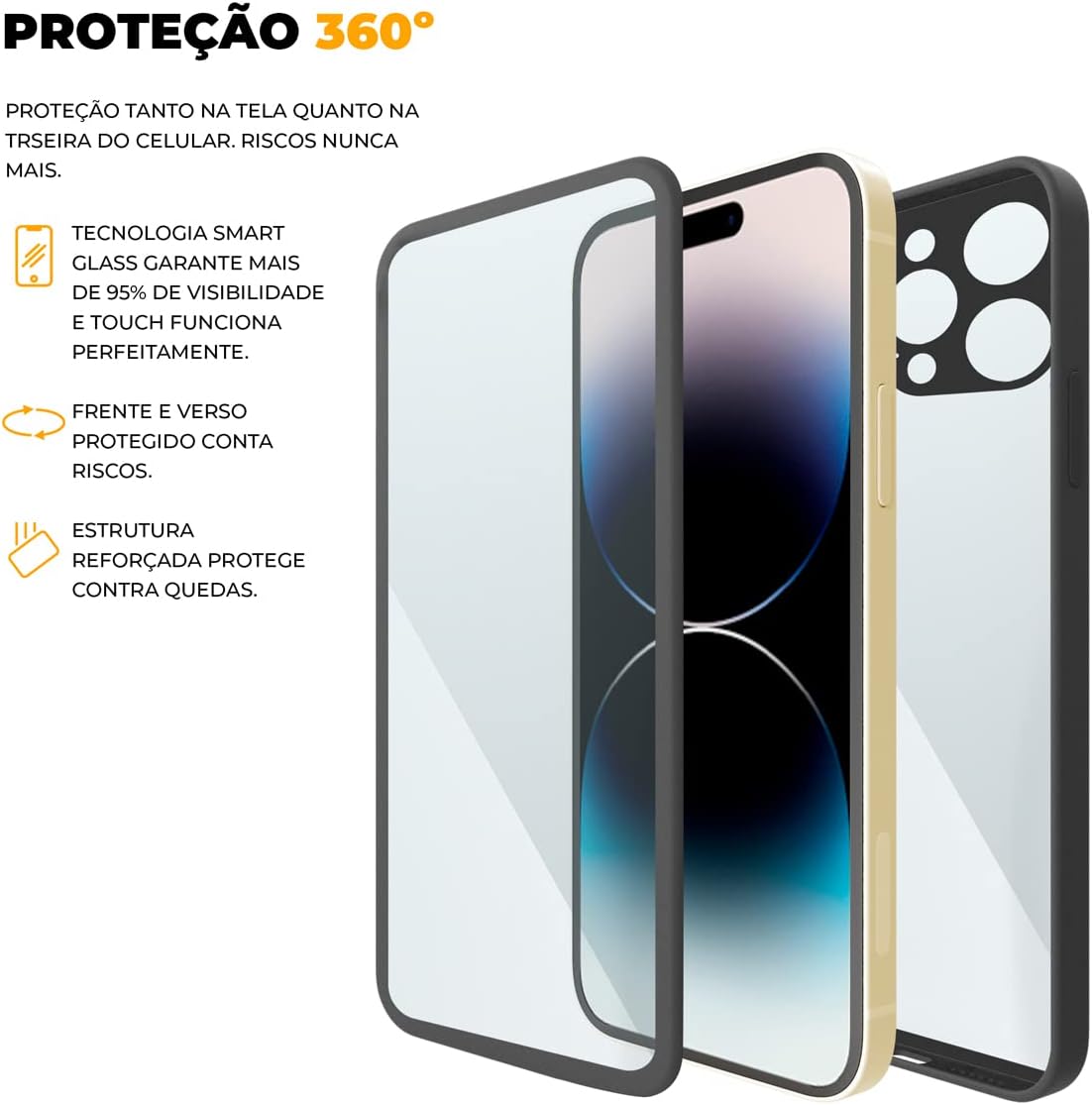 Use a melhor case para iPhone 14 Pro Max! A Capa 360 da Gshield foi projetada para garantir a melhor segurança para seu smartphone! Com um design moderno e extremamente seguro, a 360 foi desenvolvida em poliuretano termoplástico de alta resistência, e não amarela. Na parte traseira e na parte frontal em acrílico se adapta perfeitamente no aparelho e não altera na sensibilidade do touch. A capa 360 é sinônimo de proteção completa! A escolha perfeita para dupla proteção, conforto e estilo! *Não compatível com uso de películas frontais.