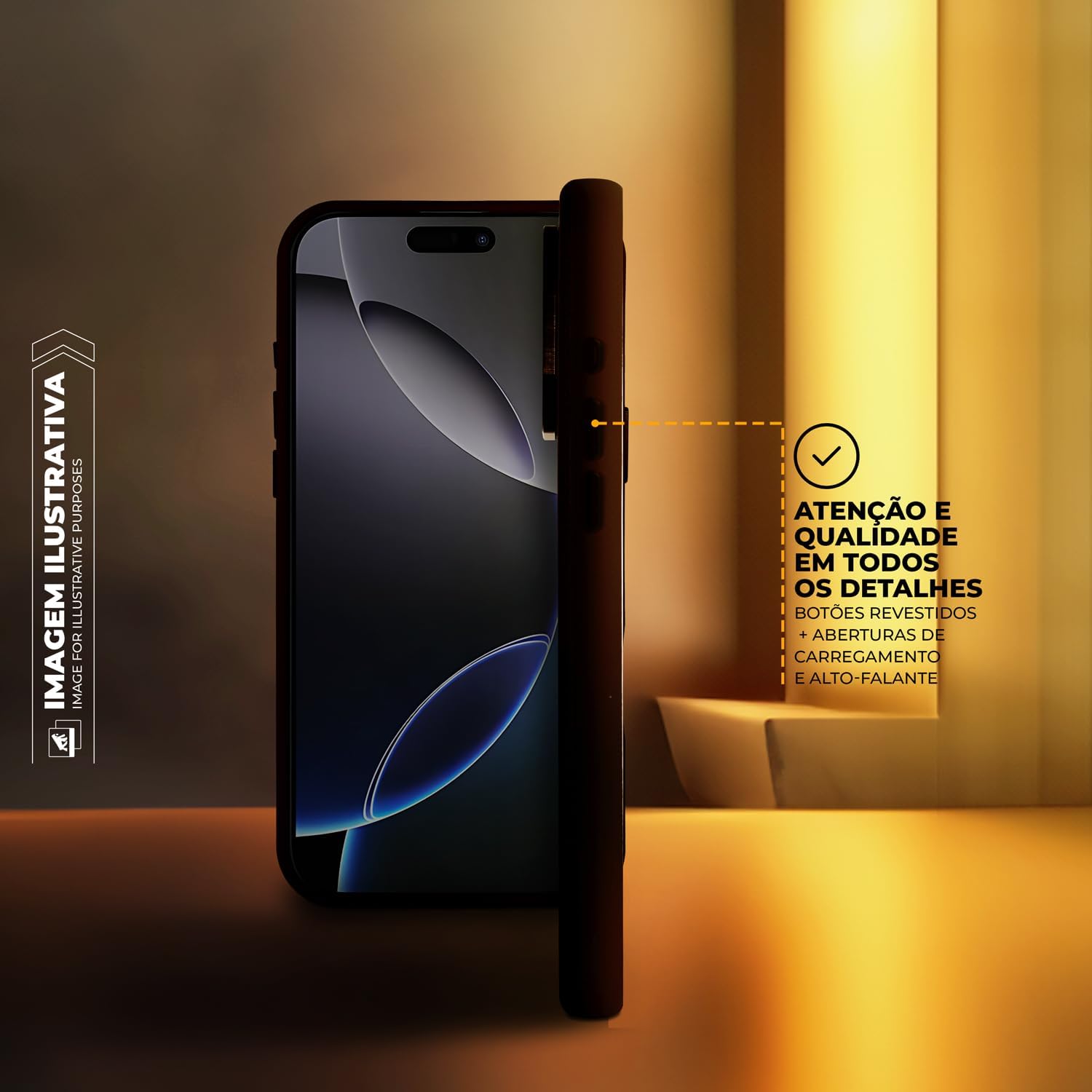 A capa envolve cada curva do smartphone com um acabamento impecável, realçando o visual premium do aparelho.