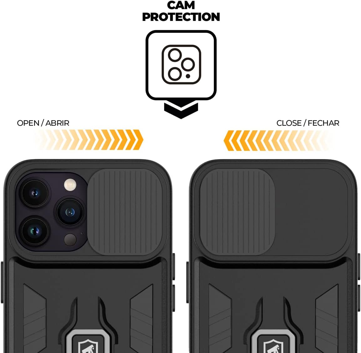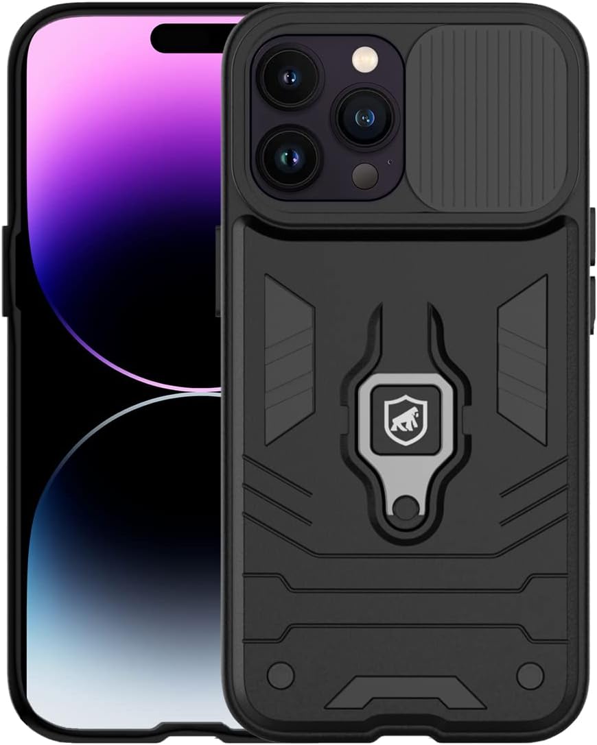Gshield | Capa Case Capinha Defender para iPhone com Proteção de câmera Alça Ring e Função kick Stand (Preta, iPhone 14 Pro Max)