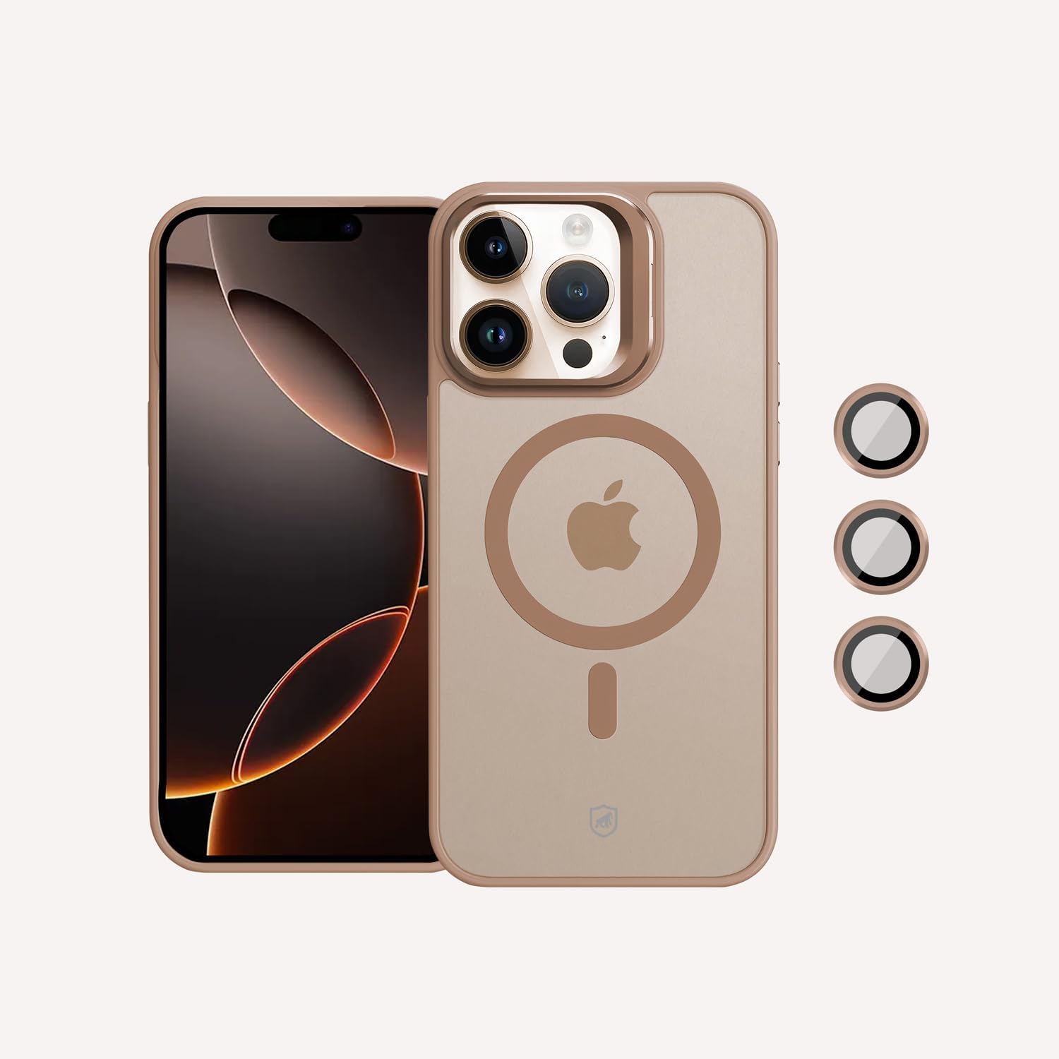Gshield Capa Case Capinha Titanium Desert com Protetores de Lente e Alça Suporte Elevada na Câmera, Compatível com MagSafe para (Bege, iPhone 16 Pro Max)