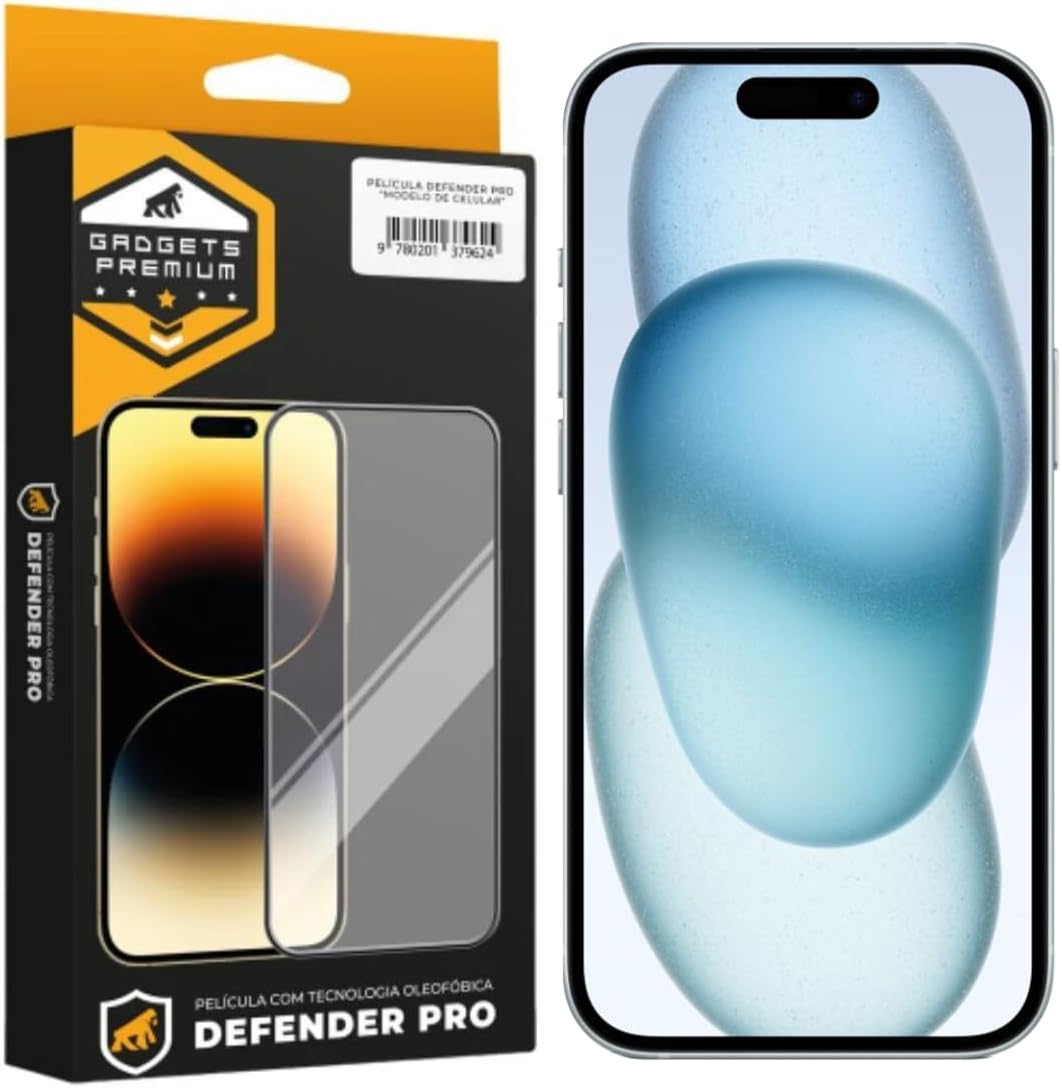 Gshield Película de Vidro Duplamente Temperado com Camada Olefóbica e Aplicador Facilitado, Defender Pro, Preta para (iPhone 15)