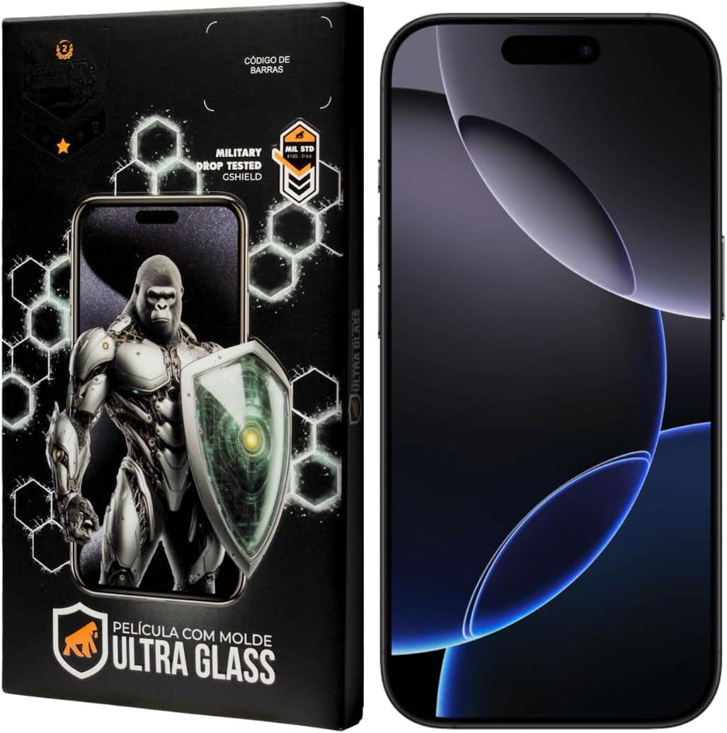 Gshield Película de Vidro Temperado Ionizado Anti-Reflexo Anti Impacto 100% de sensibilidade Tela Toda, Ultra Glass para (iPhone 16 Pro Max)