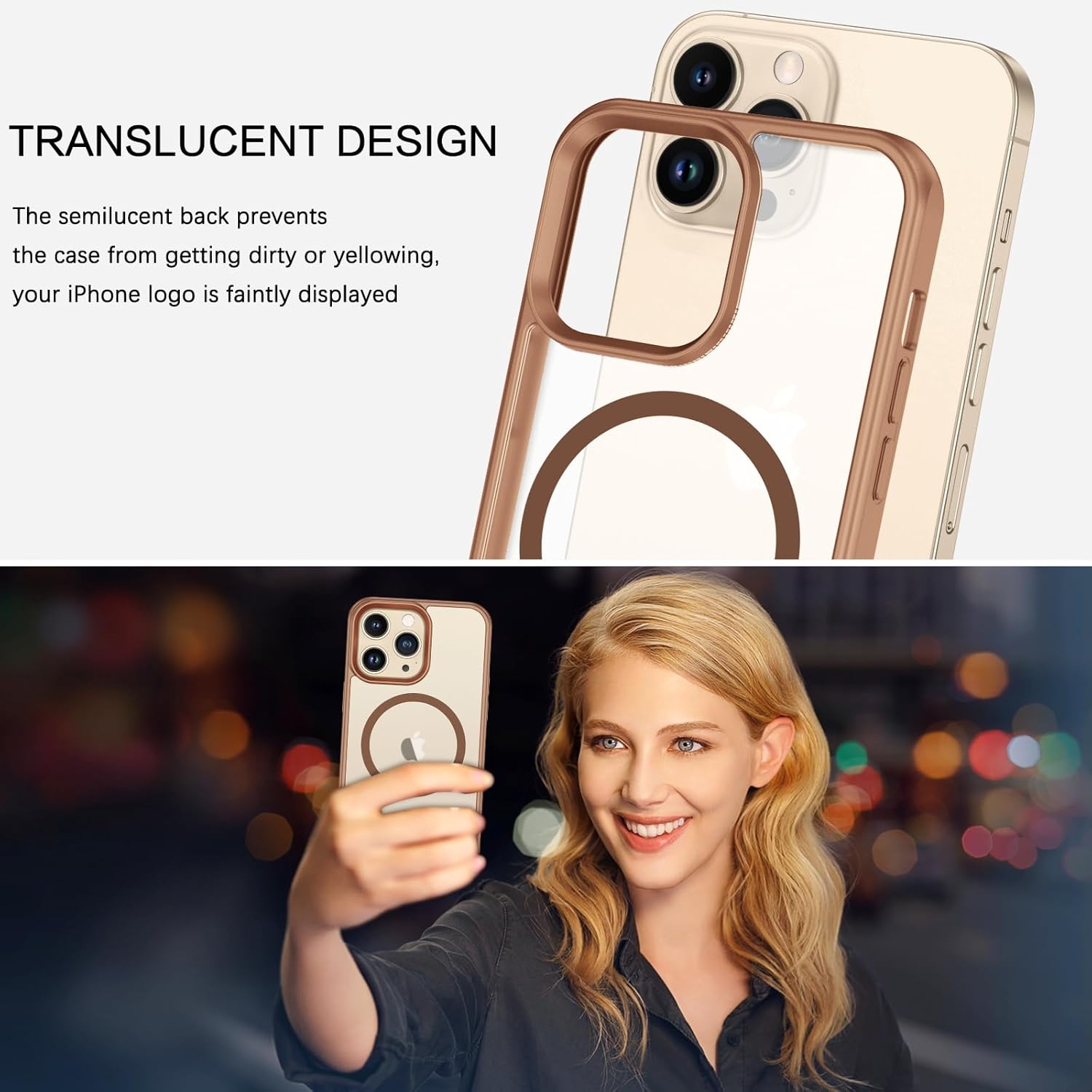Capa magnética GUAGUA para iPhone 14 Pro Max, compatível com Magsafe Slim Fit, leve, amortecedor, suporte de metal, à prova de choque, capa rígida protetora para Apple iPhone 14 Pro Max de 6,7 polegadas, titânio fosco translúcido do deserto