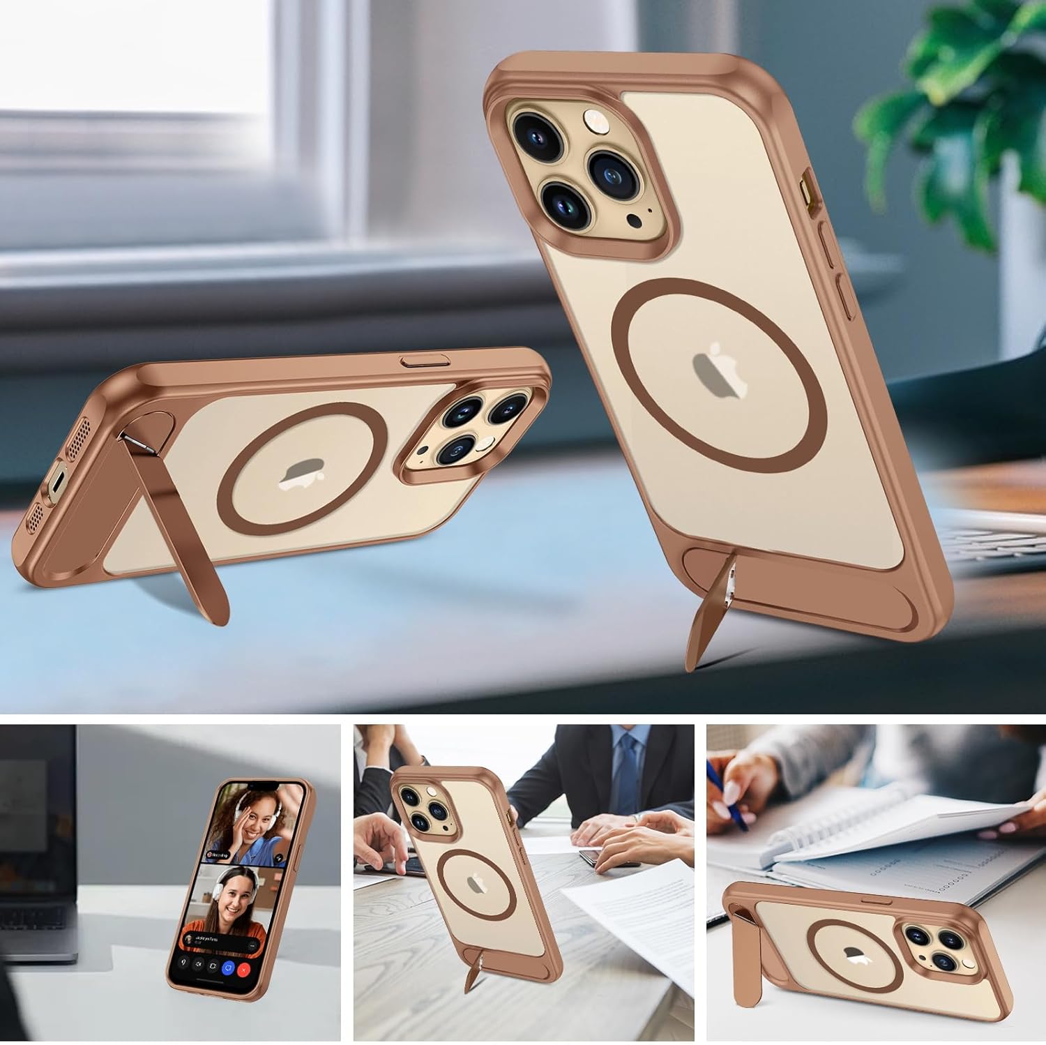 [Suporte invisível dobrável]: o suporte fica oculto quando dobrado enquanto mantém o anel Mag Safe 100% desobstruído. Você pode facilmente ajustar seu iPhone para qualquer ângulo na visualização retrato ou paisagem, oferecendo dois ângulos diferentes ao assistir a filmes ou conversar com seus amigos. Aproveite cada momento agradável da vida livremente!
