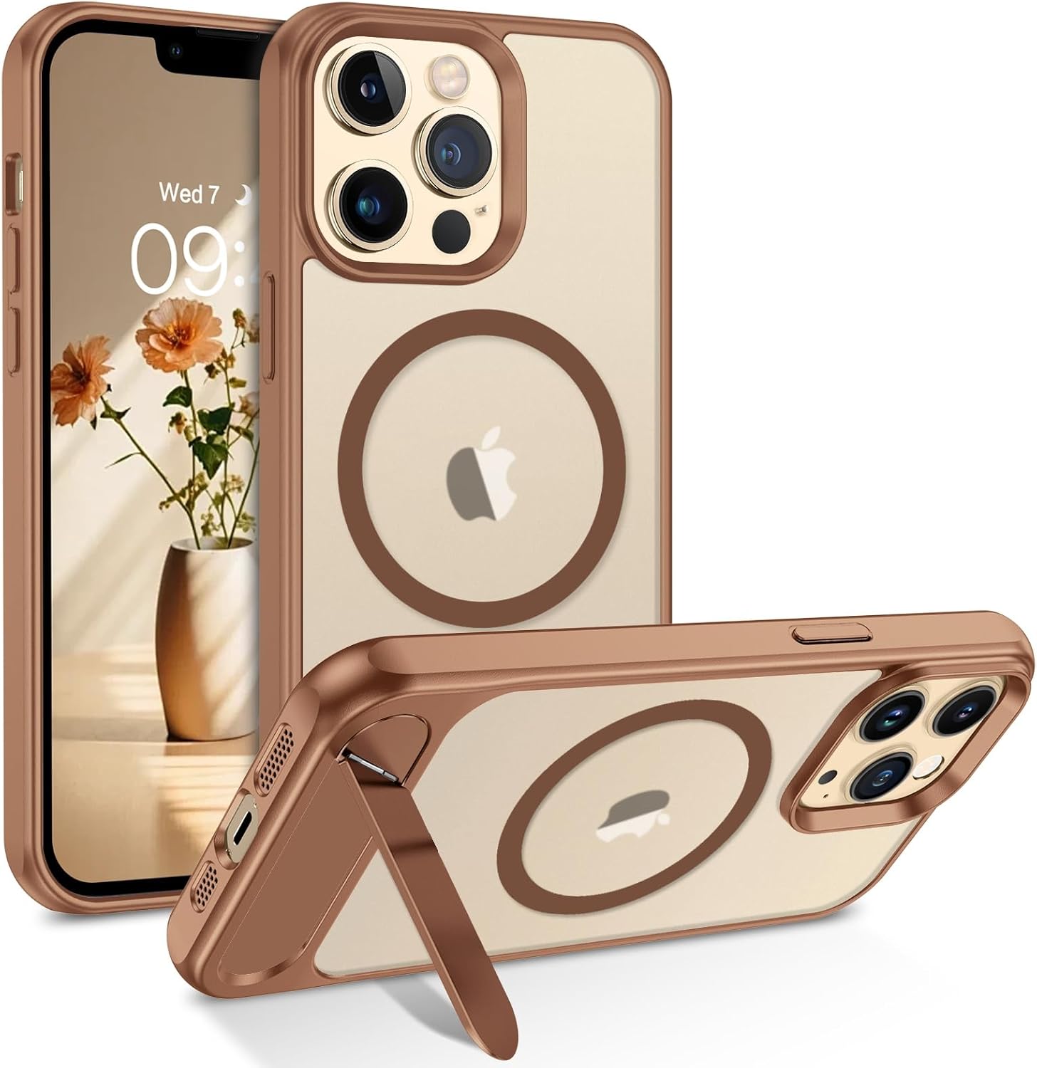 GUAGUA Capa para iPhone 14 Pro Max com suporte, capas magnéticas, dobrável, invisível, suporte, translúcido, fosco, traseira protetora, à prova de choque, capa para iPhone 14 Pro Max de 6,7 polegadas