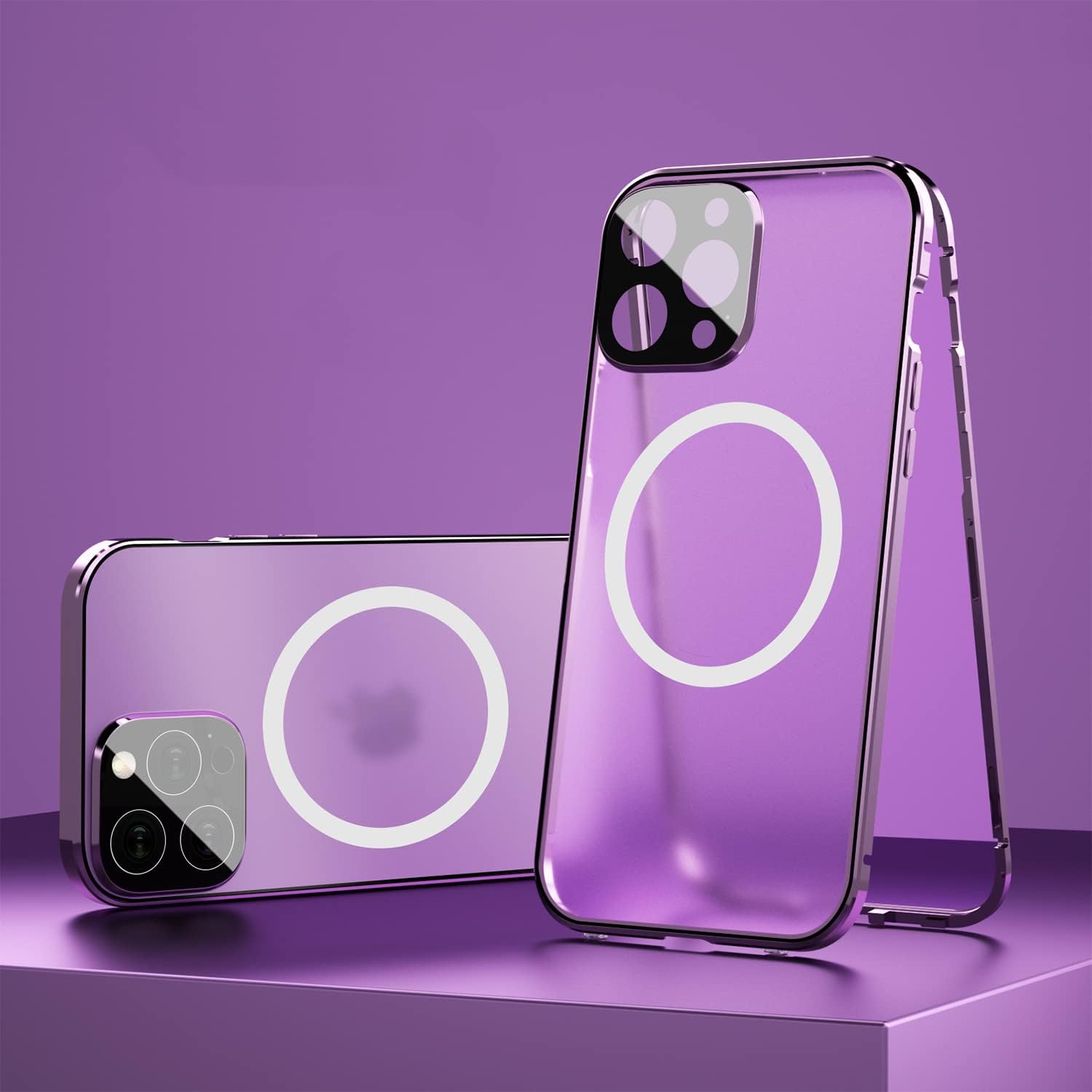 Guppy Capa para iPhone 15 Pro Max, compatível com MagSafe 360 graus proteção total absorção magnética de metal amortecedor frontal vidro traseiro PC fosco capa para iPhone 15 Pro Max (roxo)