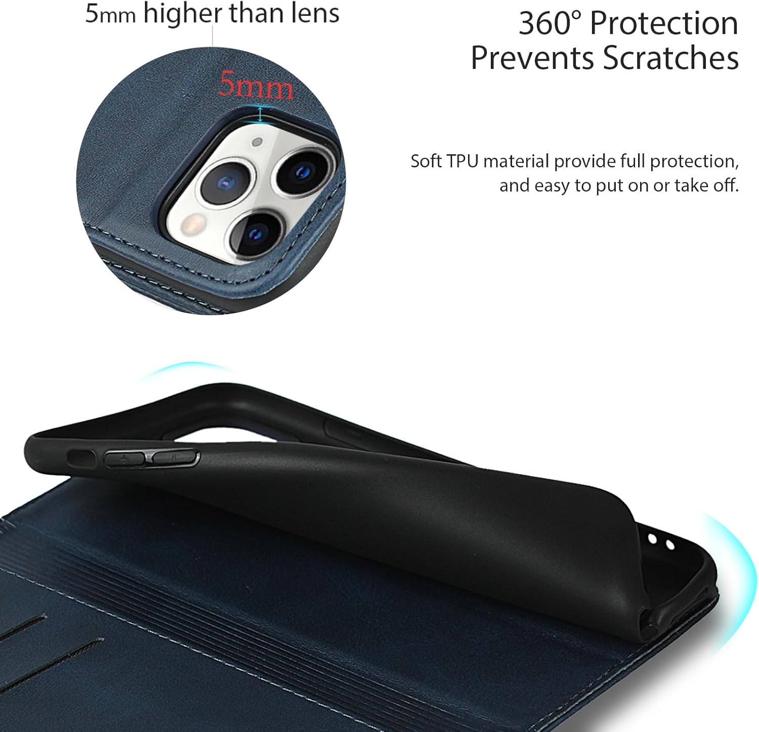 Havaya Capa carteira para iPhone 11 Pro Max com suporte para cartão para mulheres e homens couro PU flip fólio compartimentos para cartão de crédito suporte à prova de choque capa de telefone azul
