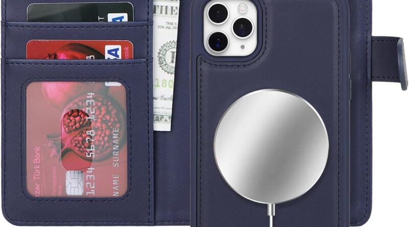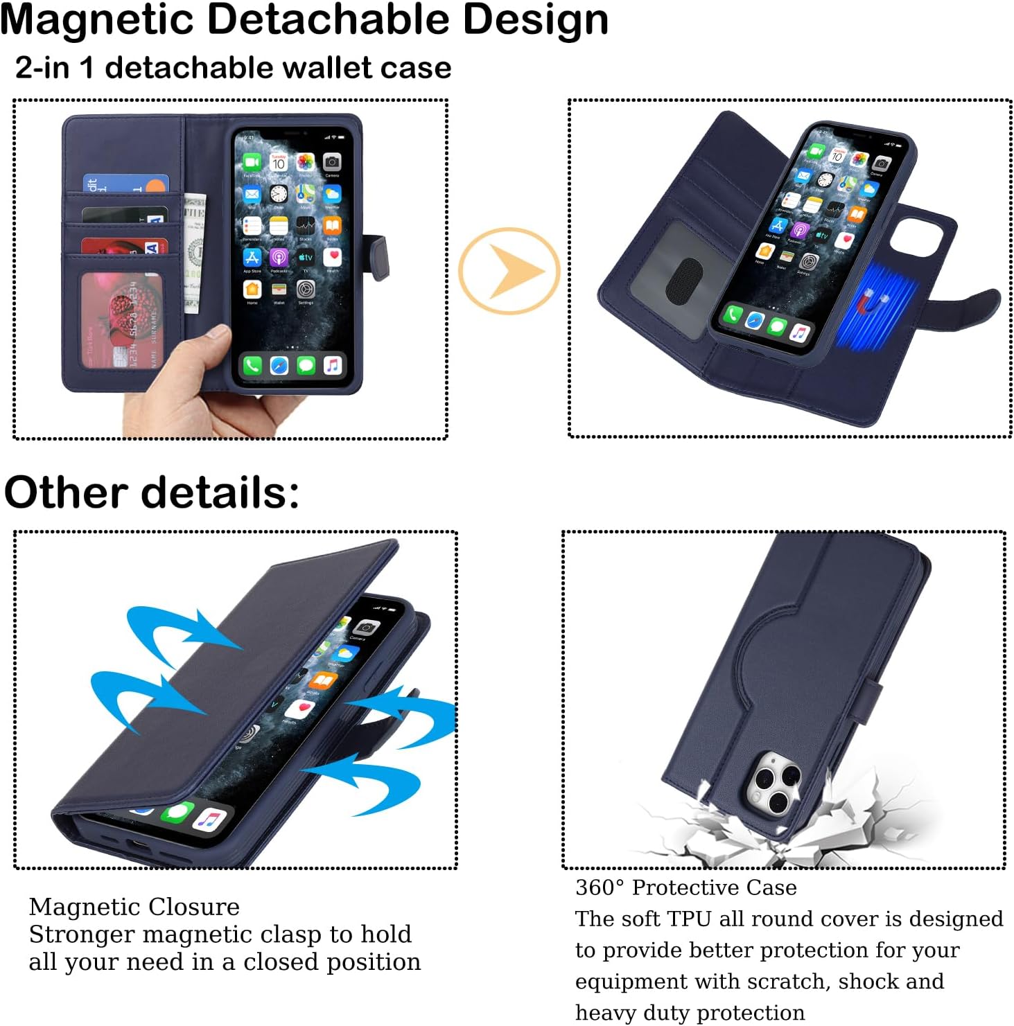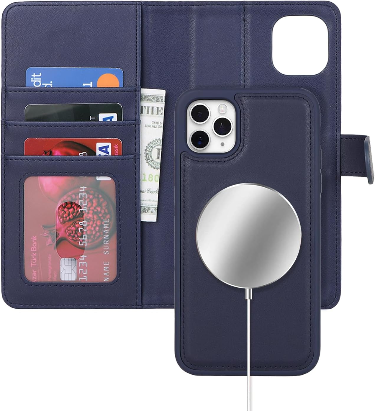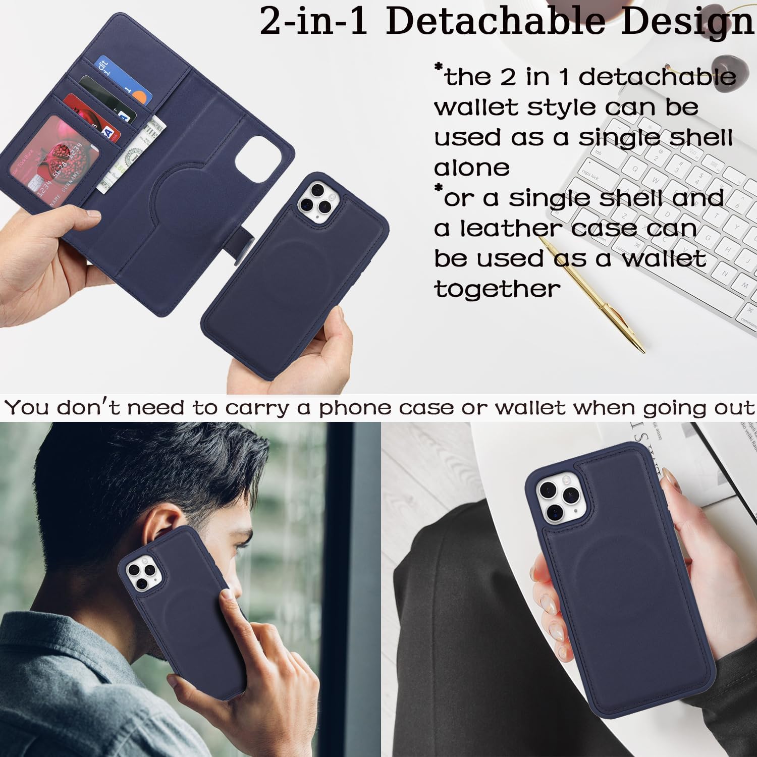 Havaya Capa para iPhone 11 Pro Max Magsafe compatível 2 em 1 destacável com suporte para cartão de couro PU Flip Folio slots para cartão de crédito suporte magnético à prova de choque capa de telefone