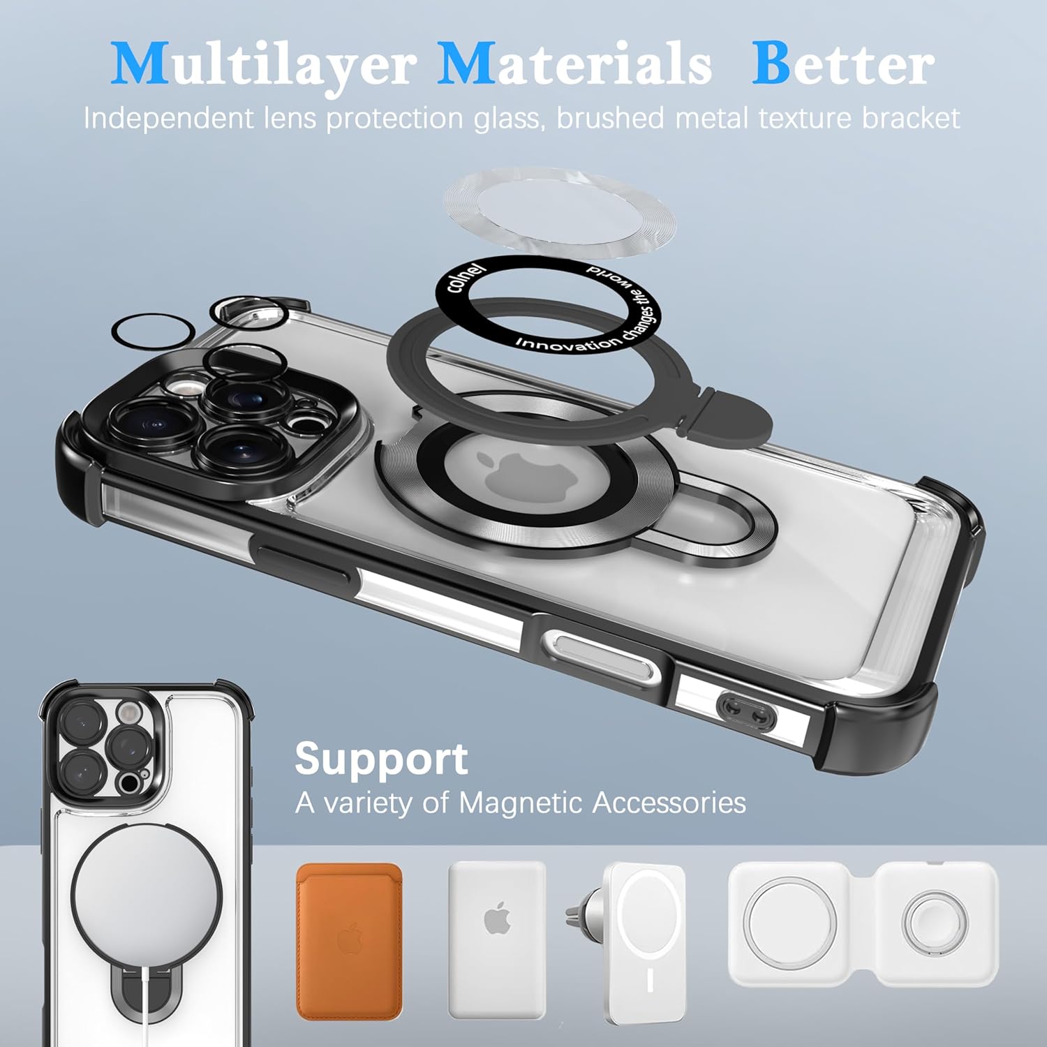 ❤【Magnético potente】Esta capa de telefone magnética com suporte invisível para airbag de quatro cantos suporta carregamento sem fio. O design do anel de ferro de metal permite fácil fixação aos ímãs, garantindo um bloqueio rápido e seguro durante a condução ou carregamento sem fio. Experimente a colocação estável do telefone sem se preocupar com tremores ou acessórios caindo. Desfrute de carregamento rápido, seja no trabalho ou em viagens.
