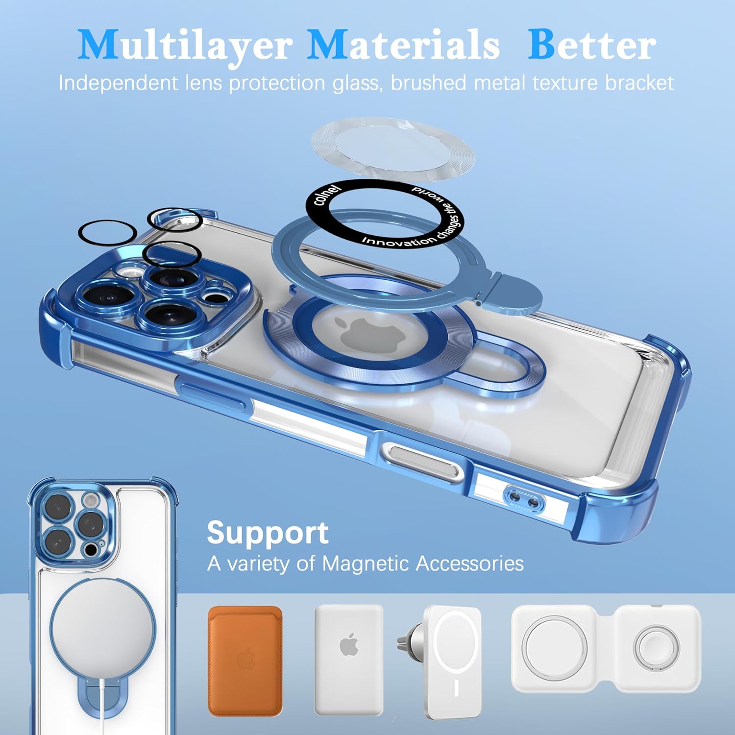 IAIYOXI Capa para iPhone 16 Pro Max com suporte magnético forte, à prova de choque de nível militar, proteção de 4 cantos de airbag, adequada para MagSafe, capa de telefone com suporte para iPhone 16