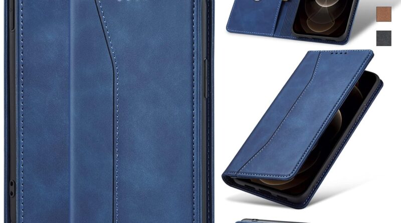 Jasonyu Flip Carteira Capa para iPhone 12 Pro Max,Capinha Folio Magnética de Couro com Suporte para Cartão,Suporte para Chute – Protetora Durável de TPU à Prova de Choque para Telefone,Azul