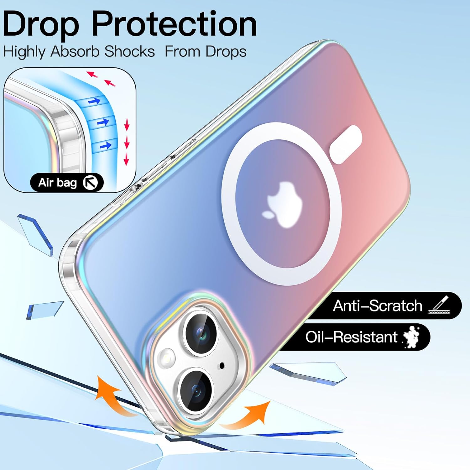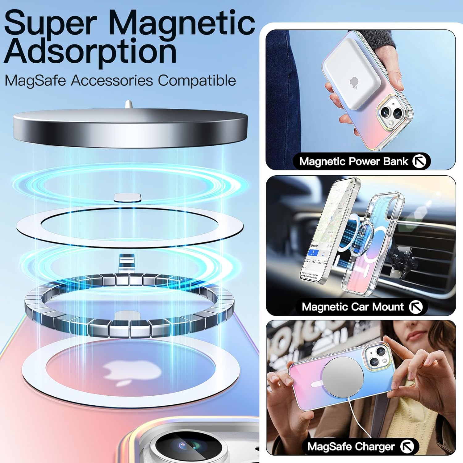 JETech Capa Iridescente para iPhone 14 6,1 Polegadas Compatível com MagSafe, Design Bonito, Exclusivo e Estético, Capa Traseira Colorida Fluorescente Translúcida