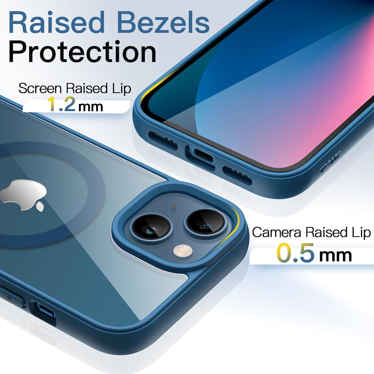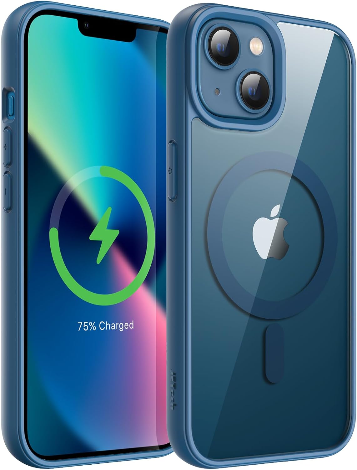 JETech Capa Magnética para iPhone 13 mini 5,4 Polegadas Compatível com MagSafe, Case Protetora à Prova de Choque, Moldura de TPU Fosco, Capinha Parte Traseira Transparente Antiarranhões (Azul)