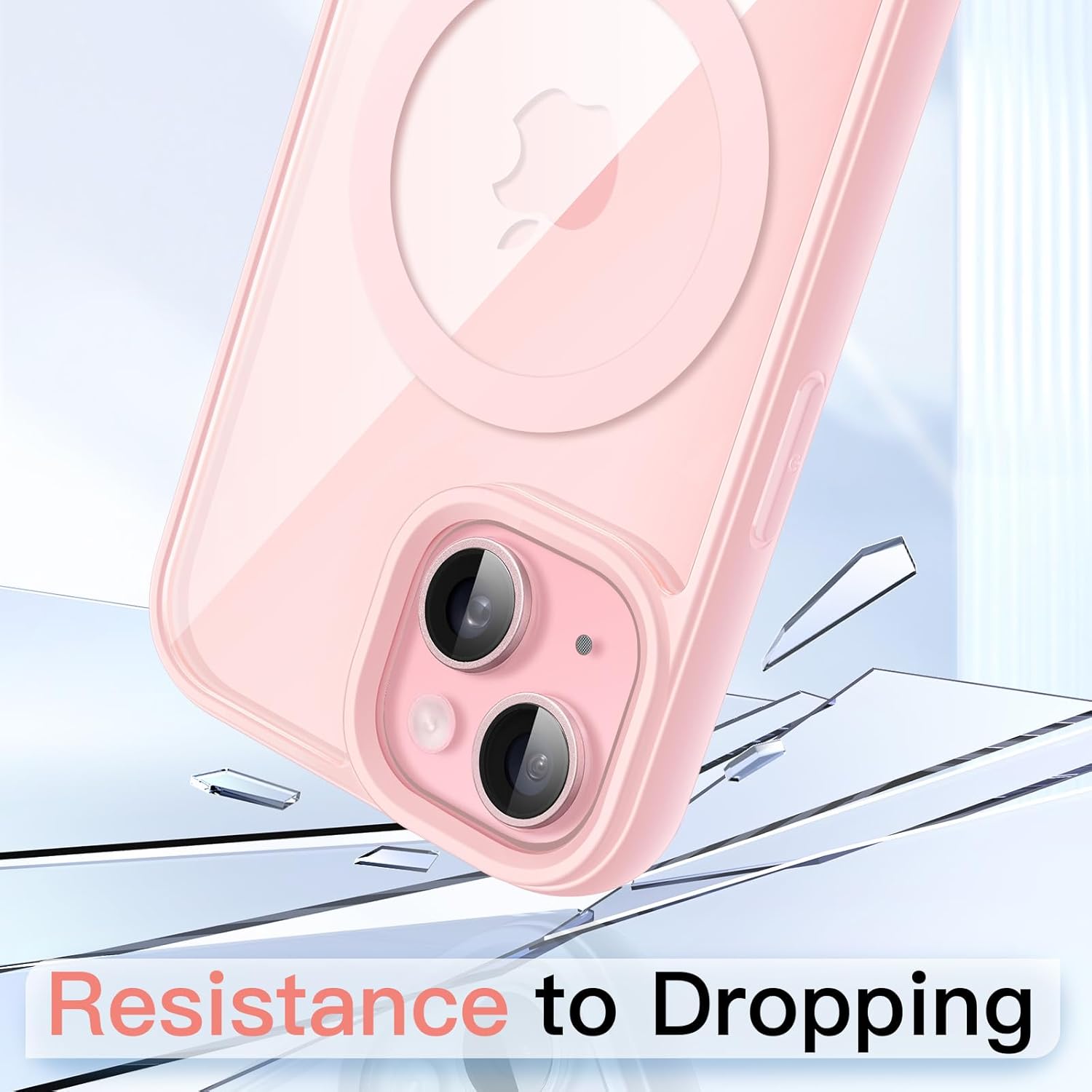 JETech Capa Magnética para iPhone 15 6,1 Polegadas Compatível com MagSafe, Case Protetora, Moldura de TPU Fosco, Capinha Parte Traseira Transparente Antiarranhões (Rosa)