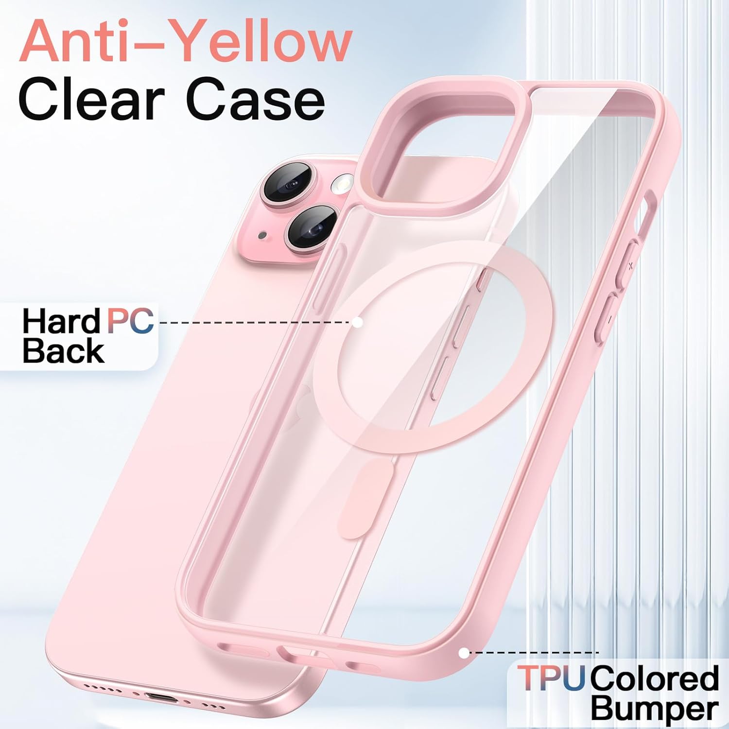 JETech Capa Magnética para iPhone 15 6,1 Polegadas Compatível com MagSafe, Case Protetora, Moldura de TPU Fosco, Capinha Parte Traseira Transparente Antiarranhões (Rosa)