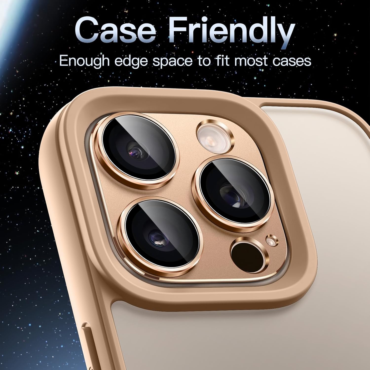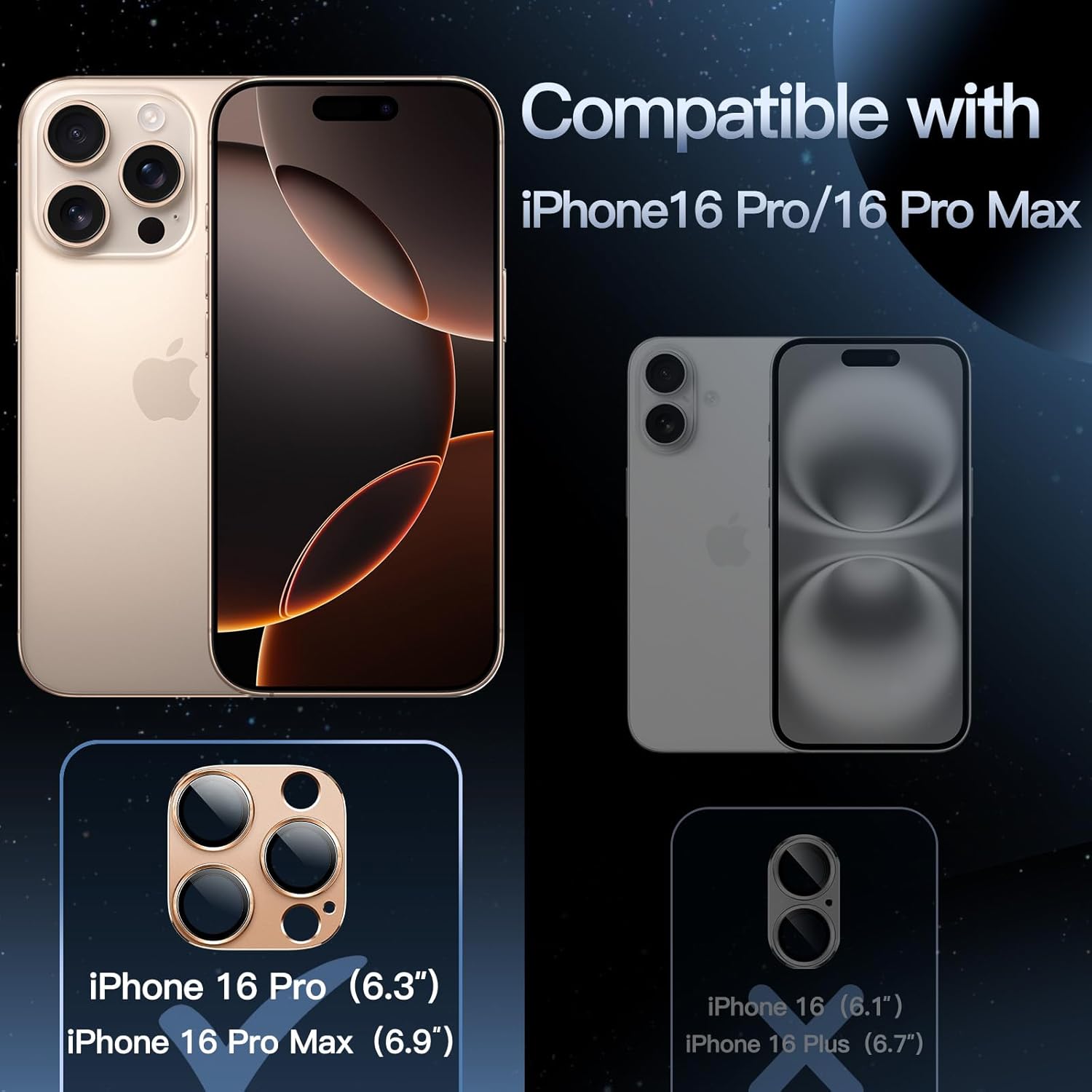 JETech Protetor de Lente de Câmera para iPhone 16 Pro 6,3 Polegadas e iPhone 16 Pro Max 6,9 Polegadas, Cobertura Total Capa de Anel de Vidro Temperado 9H, 1 Pacote (Titânio-Deserto)
