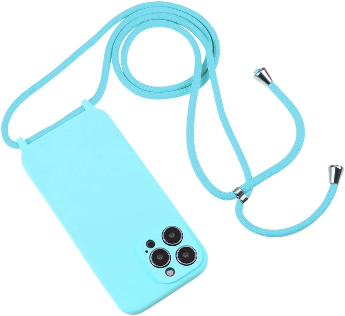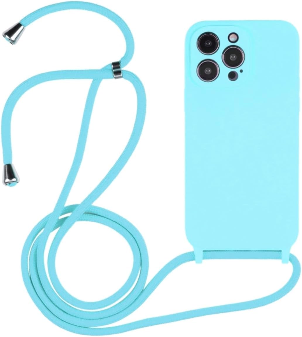 JFO Capa Capinha Cordão com Alça Ajustável para iPhone 13 14 15 16 (Azul-claro, iPhone 12)