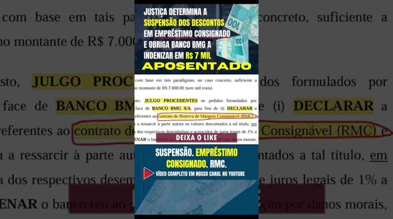 JUSTIÇA DETERMINA SUSPENSÃO DOS DESCONTOS EM EMPRÉSTIMO E OBRIGA BANCO BMG A INDENIZAR EM R$ 7 MIL