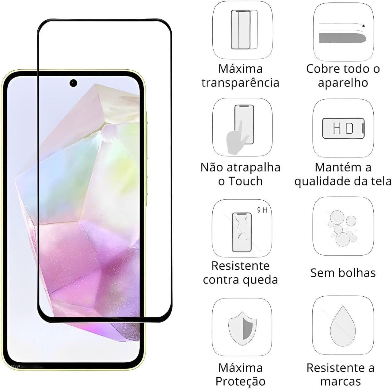Materiais de alta resistência: para durabilidade prolongada.Compatibilidade perfeita: encaixe preciso e acesso total a botões e câmeras.Instalação fácil: sem bolhas ou complicações, em minutos seu Galaxy A15 estará protegido.