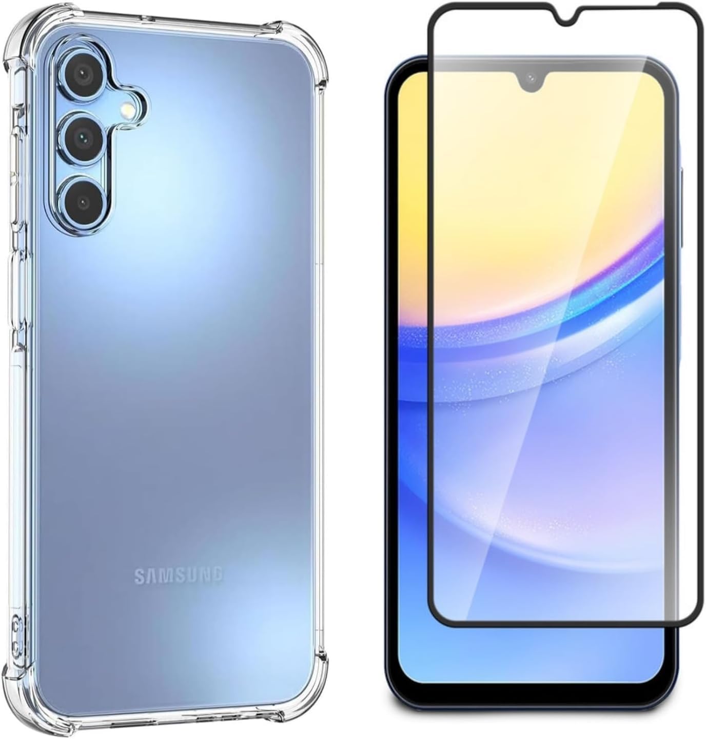 Kit Capa Capinha Anti-Impacto + Película 3D Vidro Temperado Para Samsung Galaxy A15 4G/5G | Proteção Total | Transparente | Case Air Anti Impacto + Película De Vidro Temperado 3d Resistente