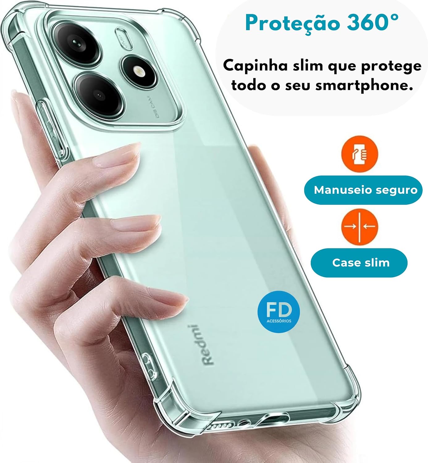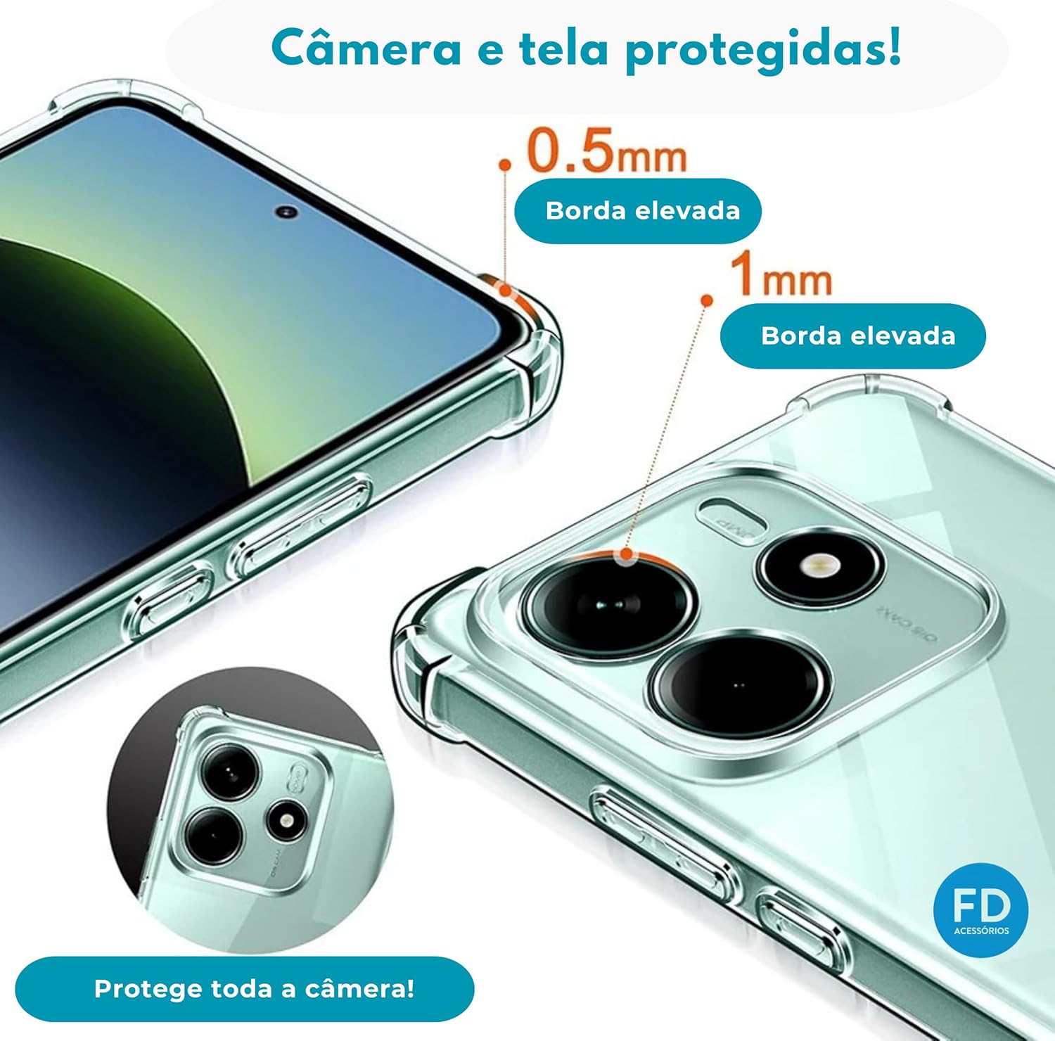 Transparência e Durabilidade: Fabricada com material de alta qualidade, a capa mantém a estética original do seu smartphone, sendo completamente transparente e resistente ao amarelecimento, mesmo após longo período de uso.