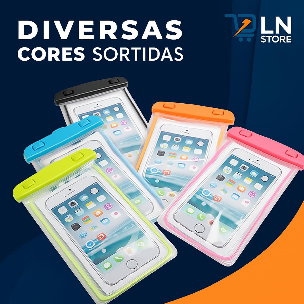 Kit com 2 capas impermeáveis, a Prova D’Água para celular, iphone, até 6.5″, com alça universal, Proteção IPX8, Ideal para Praia Trilhas Piscina Viagens (Cores Sortidas) – Qualidade Premium LNSTORE