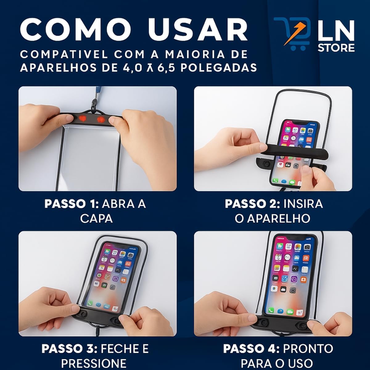 ⚠️ Atenção: Teste Antes do Uso – Sempre teste com papel toalha antes de submergir o produto para garantir vedação total e segurança do seu dispositivo