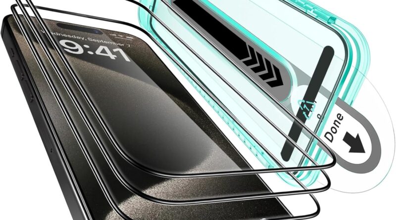![Kit ESR 3 de película de vidro temperado para iPhone 15 Pro Max, [rigidez 9H] [anti-estilhaçamento de nível militar], cobertura total, bandeja ajuste impecável, transp.HD, resistência a riscos]( https://m.media-amazon.com/images/I/71-KcqghDfL._AC_SL1500_.jpg)