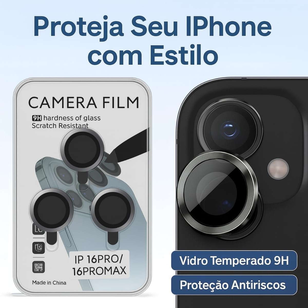 Proteja as lentes da câmera do seu iPhone 16, 16 Pro e 16 Pro Max com nosso kit de películas premium. Desenvolvido com vidro temperado 9H de alta resistência, este conjunto oferece proteção superior contra arranhões e impactos sem comprometer a qualidade das suas fotos. O kit inclui películas específicas para cada modelo: 2 películas para iPhone 16 e 3 películas para as versões Pro e Pro Max, garantindo cobertura completa para todas as lentes. A instalação é simples e livre de bolhas, sem necessidade de cola adicional. O design ultrafino mantém a estética original do seu dispositivo enquanto proporciona máxima proteção. Cada película é precisamente cortada para um encaixe perfeito em cada lente, preservando a nitidez e qualidade das imagens. Mantenha suas lentes protegidas e suas fotos impecáveis com este kit essencial para seu iPhone.